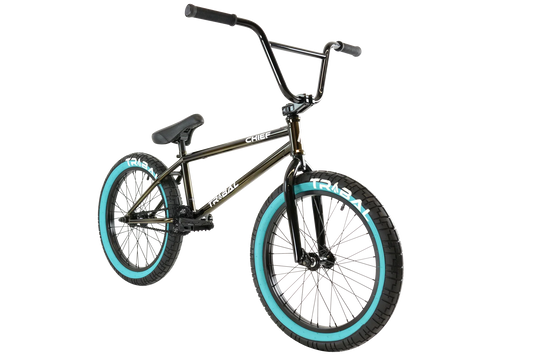 Tribal Bikes Chief 100% Cro-mo 20.9" TT Bike Smokey Joe w/ Teal Tyres