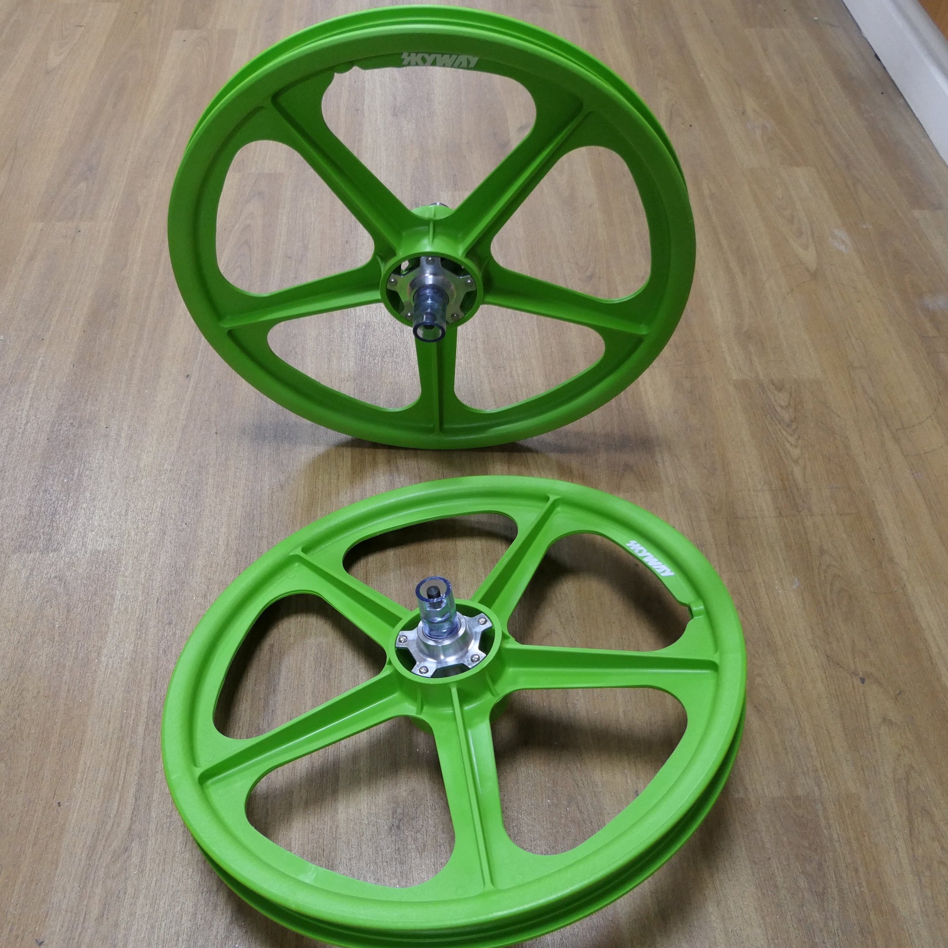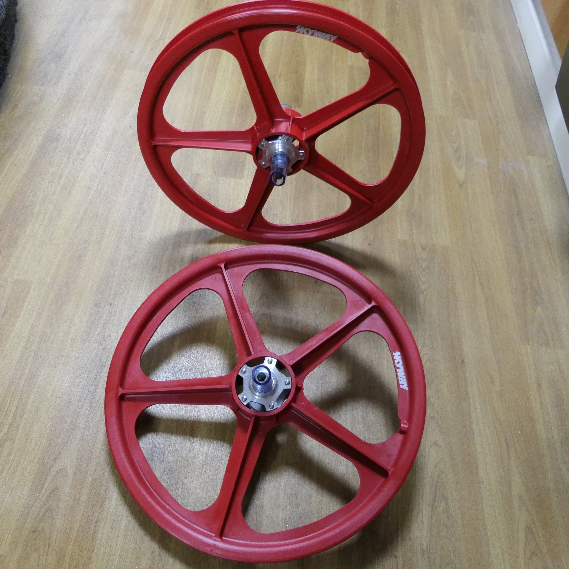 There simply is no more iconic 1980’s BMX product than Skyway Tuff Wheels. Skyway's original Tuff Wheel. Fast, smooth, and reliable; these Tuffs exceed the performance you have come to expect of genuine Skyway Tuff Wheels. Please see our other listings for other options: 9T, 24”, coaster brake, 6 spoke, graphite versions, etc.