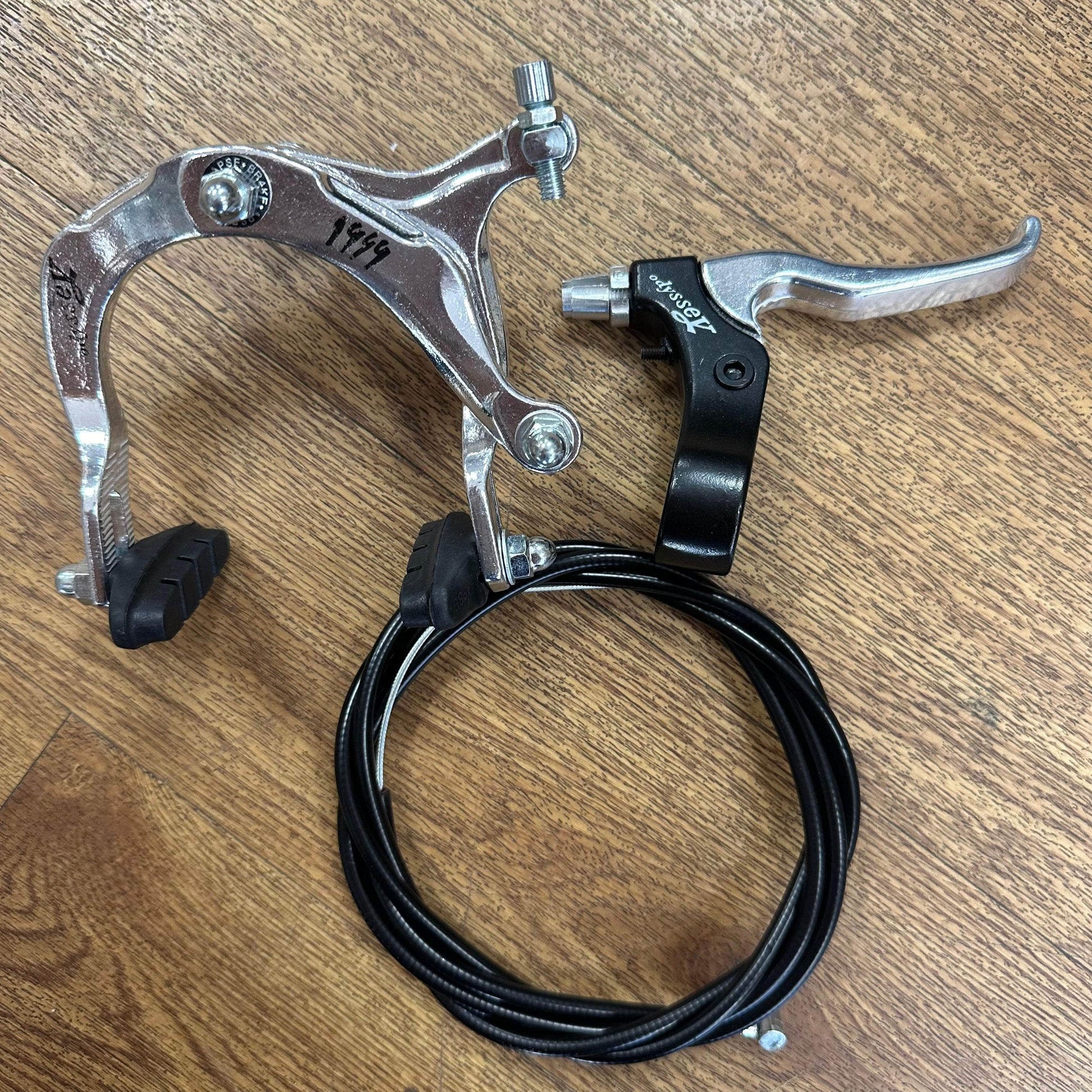 This kit includes a brake cable, universal brake caliper, front and rear pivot bolts, alloy brake lever and all necessary hardware. Lever is right hand side but can be flipped over to run on the left. We also have some original new-old-stock vintage Odyssey Sidewinder brake levers.