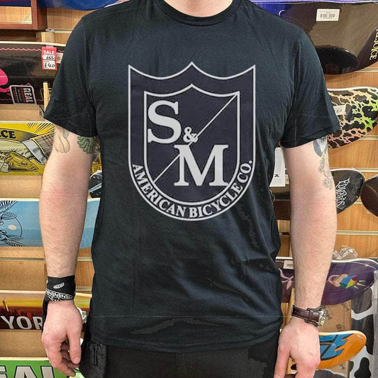 S&M Bikes Big Shield T-Shirt Black on White