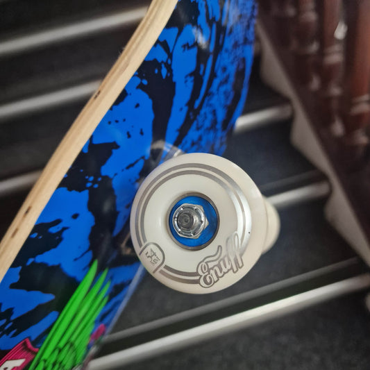 We sell ready to skate completes plus Decks, Trucks, Bearings, Wheels, Rails and everything else you need to put a skateboard together.