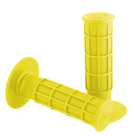 The A’ME MX Full Waffle grips were developed and tested by experienced MX and off-road racers. They are offered in a medium / soft compound and made from a proprietary blend of a TPR rubber compound, Vulcathane,™ which provides exceptional wear for a softer grip and offers the rider a tacky and easy grip surface for all types of riding conditions.