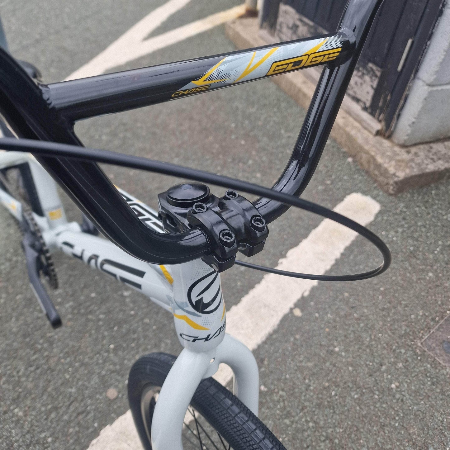 The CHASE Edge Expert XL is a pure-bred BMX racing machine, ideal for improving and taking it to the next level. Now equipped with a disc braking system and closed rear dropout system, it has a hydroformed triple butted 6061 aluminum frame with integrated headset, a chromoly fork and handlebars, a crankset with INSIGHT chainring, double wall rims with cassette rear hub and TIOGA Powerblocks. The combination of all these components arguably makes the CHASE Edge one of the most advanced out-of-the-box race BMX bikes on the market today.