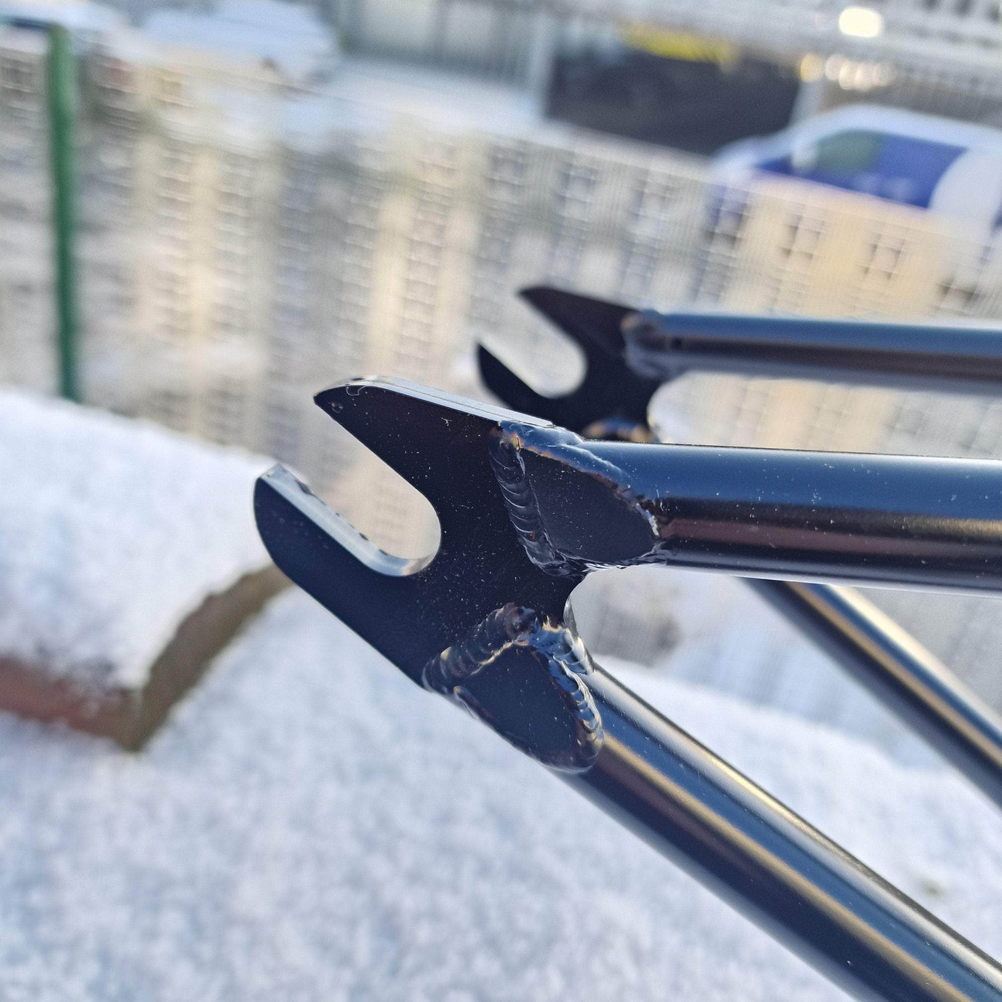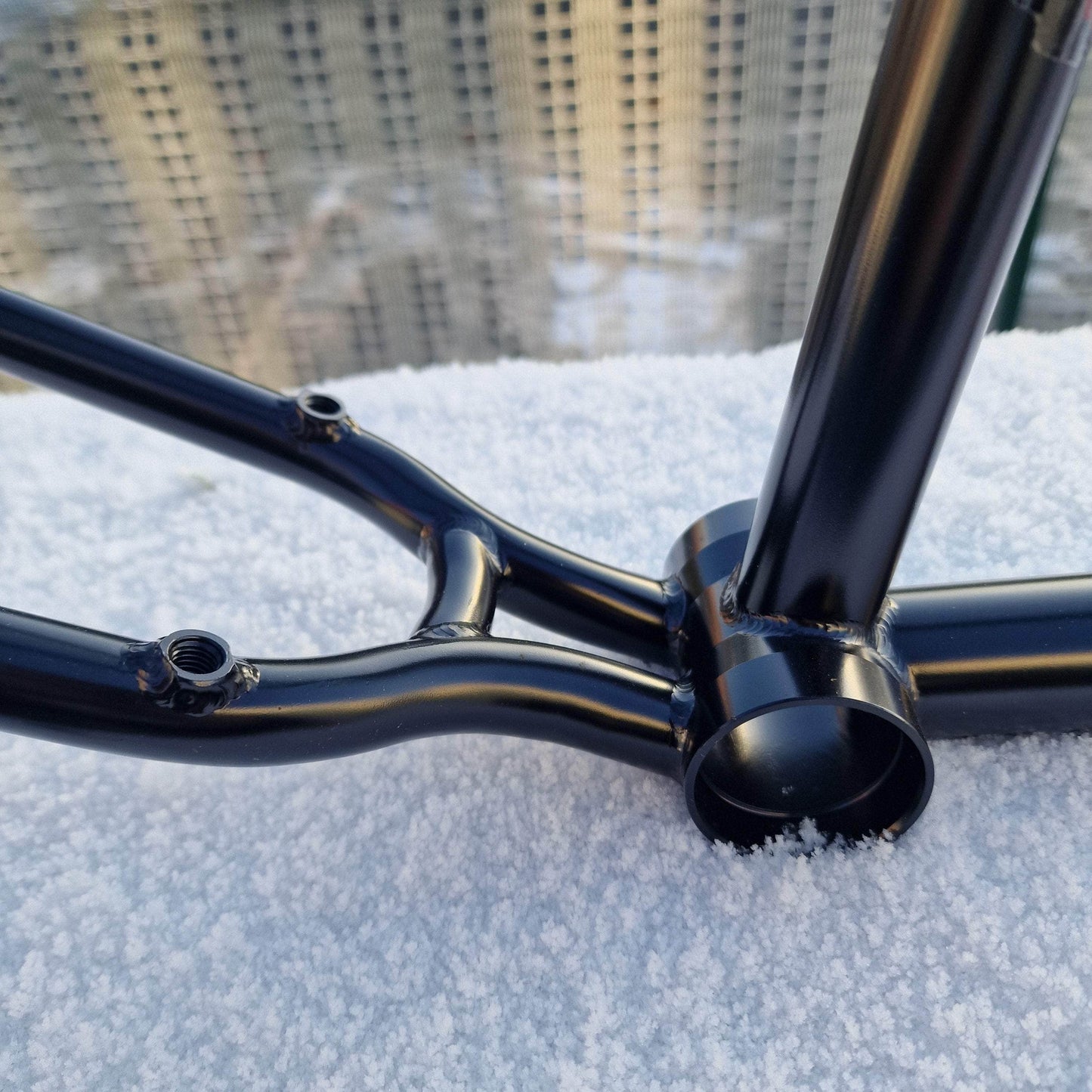 - Heat treaded CrMo headtube, Mid BB shell & drop outs.