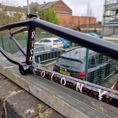 The Rico BMX frame is Pat Fallico’s signature tech steed, built for his unique style of riding with a 12.9" rear and choice of 20.6" or 21" toptube.