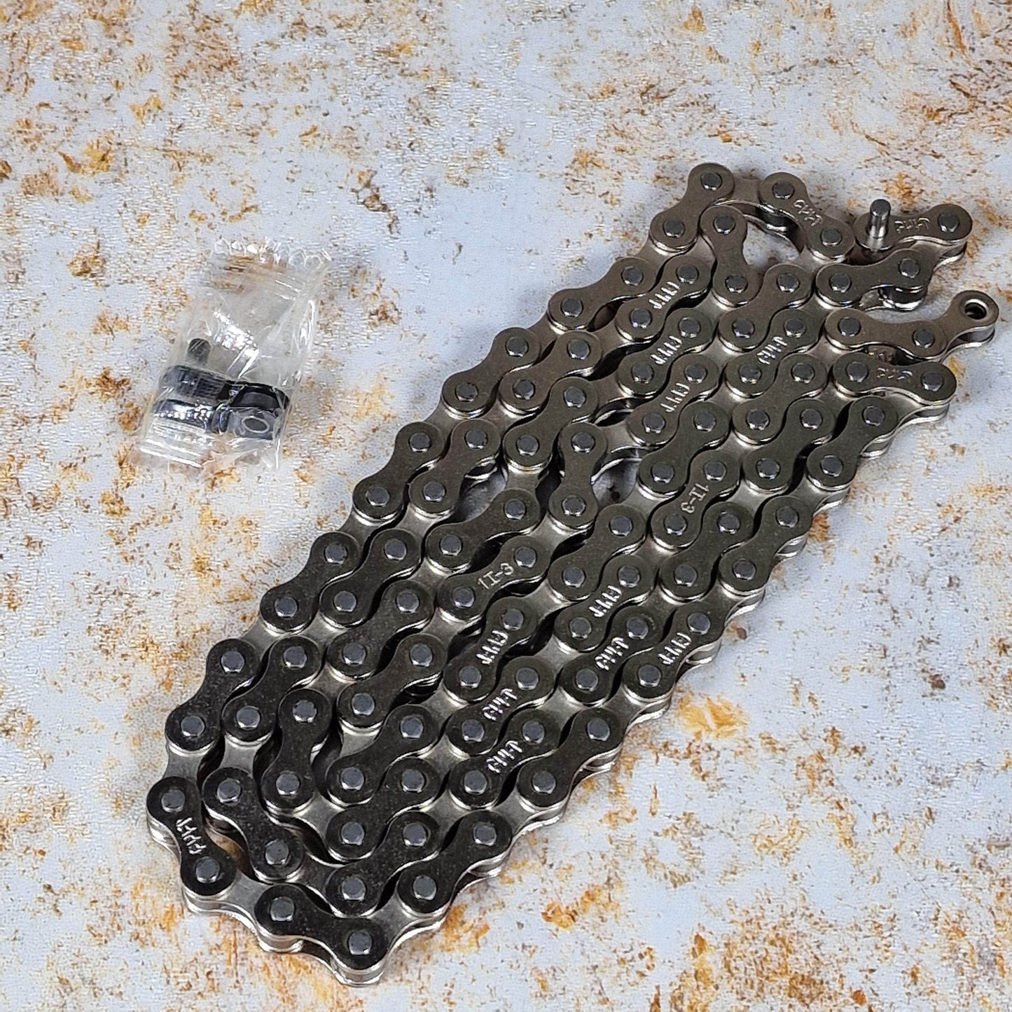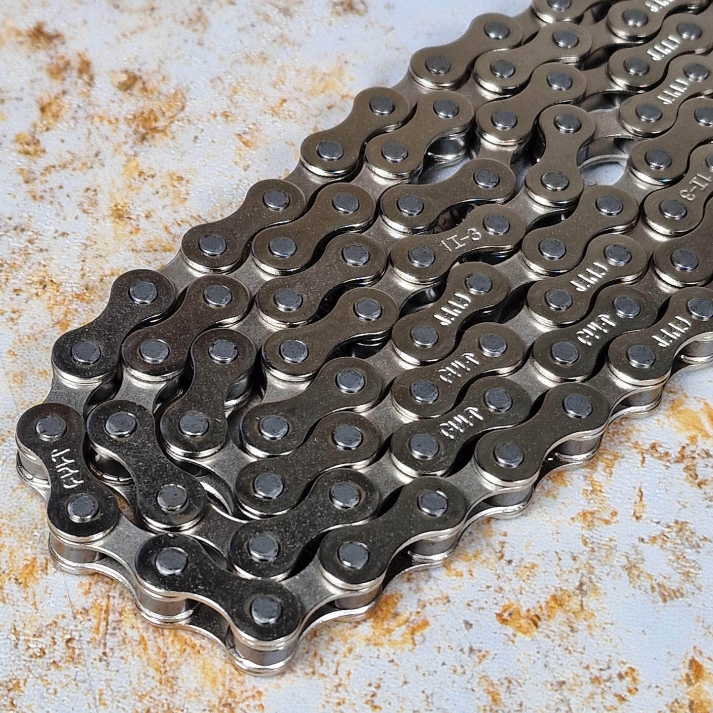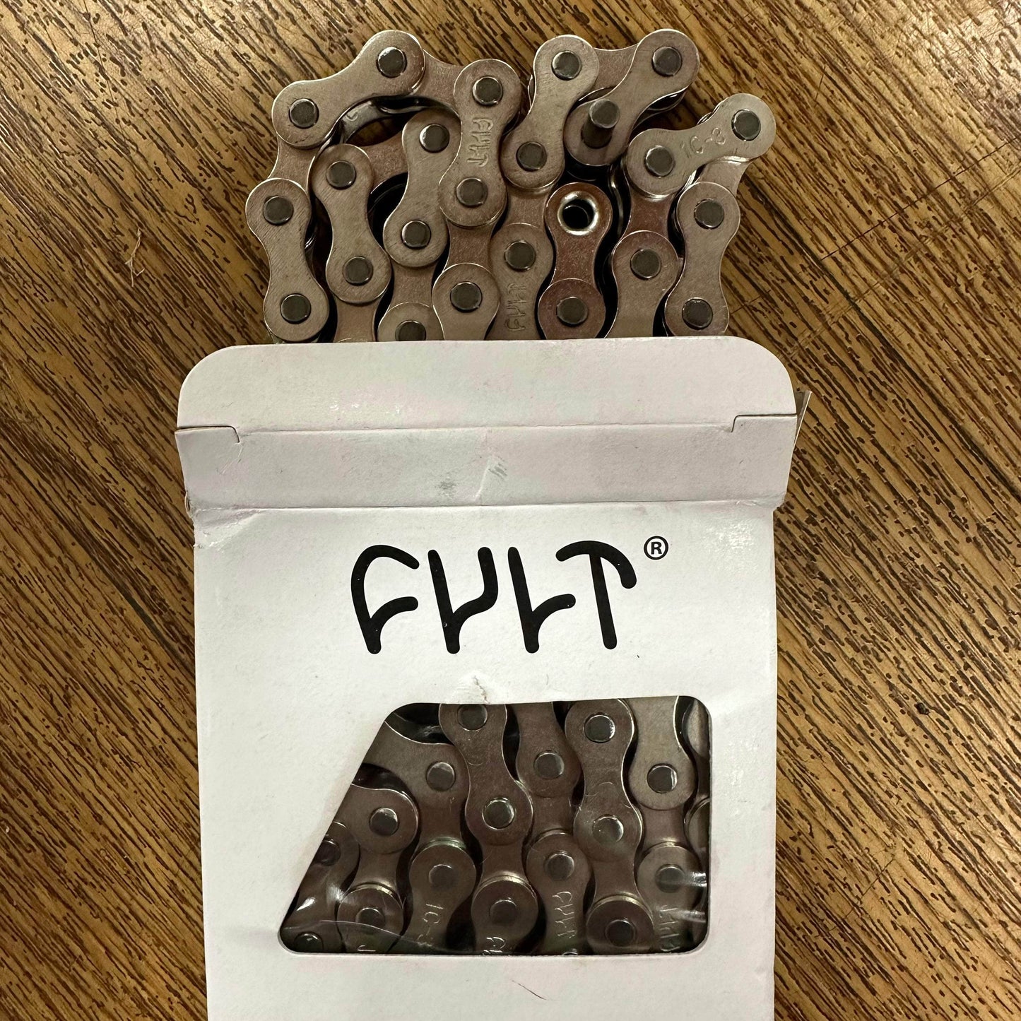 The Cult 410 chain in chrome is one of best selling BMC chains. It is a strong and affordable 1/8" chain based on the original KMC 410 with stamped Cult logos and a Teflon coating.