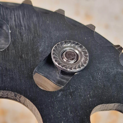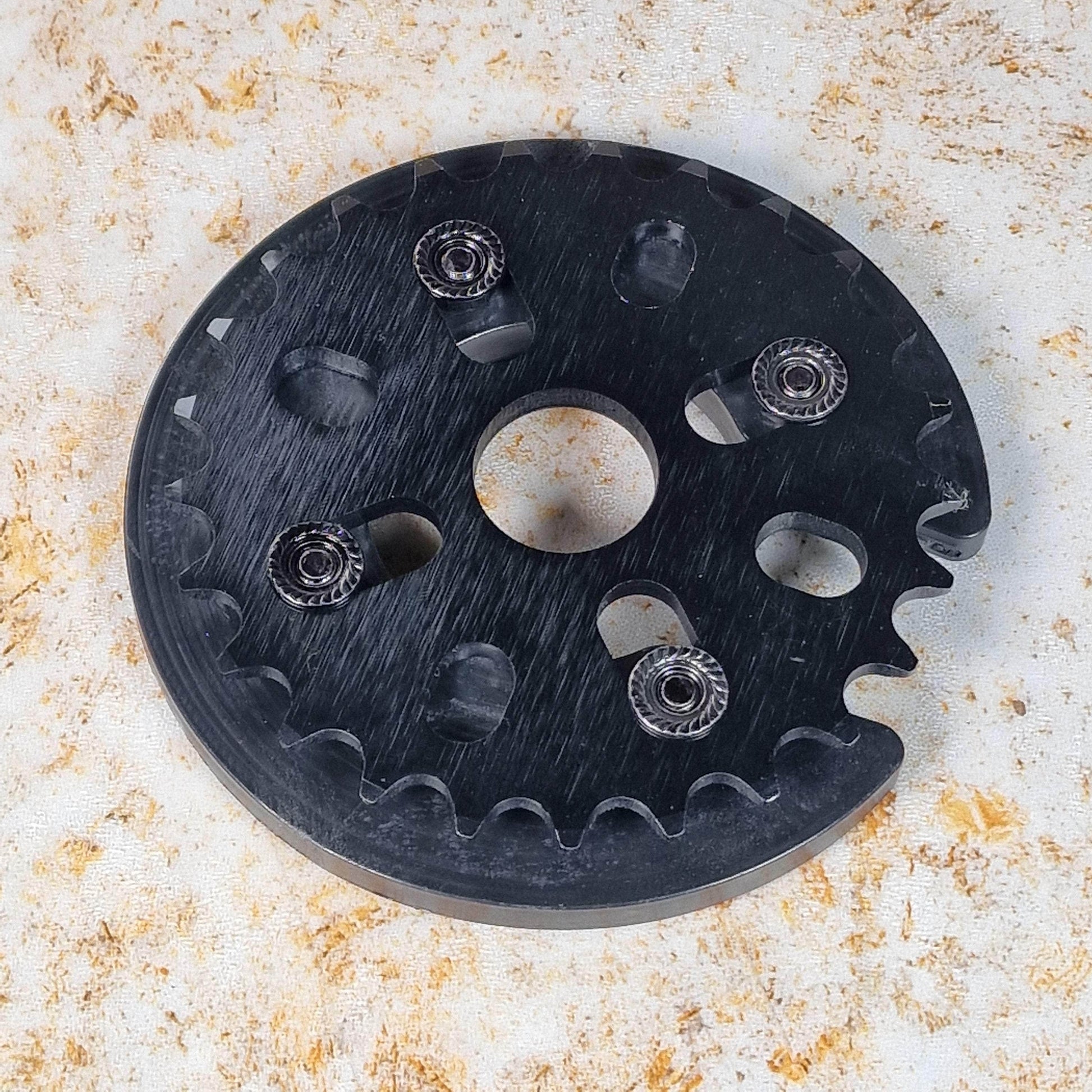 Anthony Panza 7075 alloy sprocket. This sprocket comes with a heavy duty high density nylon guard built to be abused. Supplied with hardened chromo hardware.