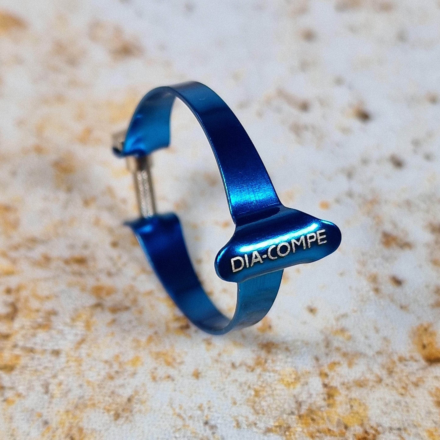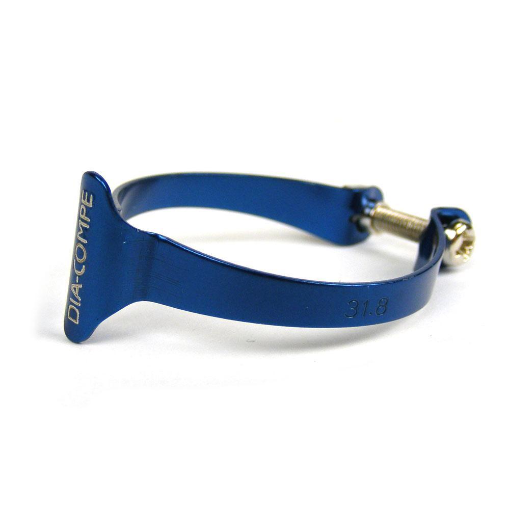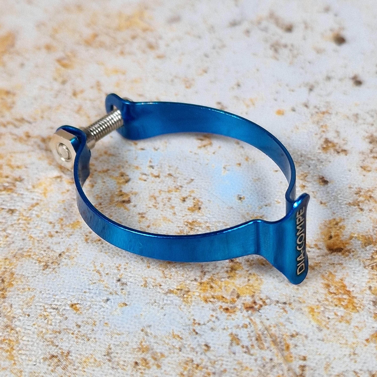 Diacompe genuine Stainless Steel "Old school" top tube clamps for your brake cable in Blue in sizes 25.5, 28.5 or 31.8mm.