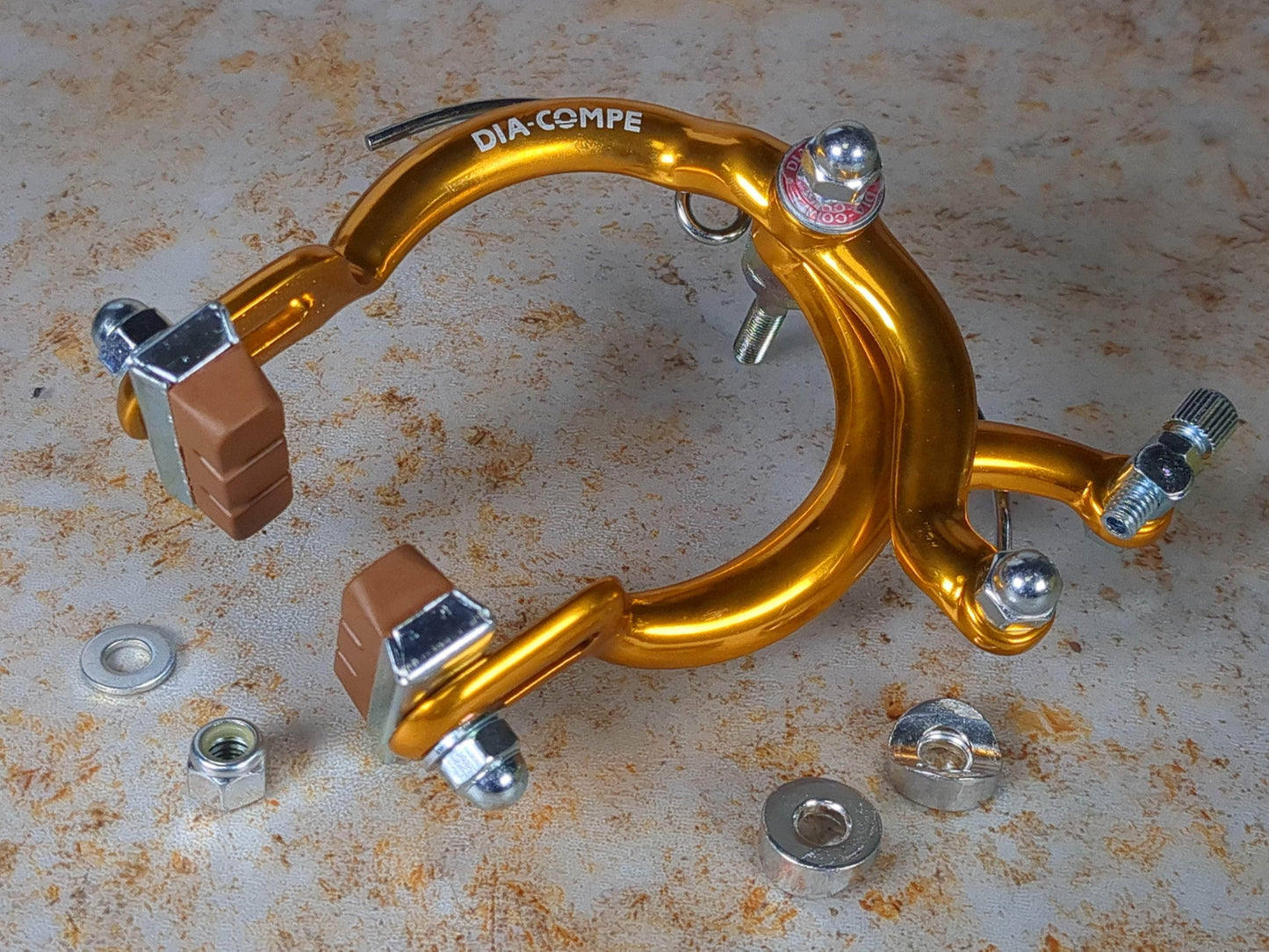 These new versions from DiaCompe actually look nicer in our opinion than the new MX1000 and they come in Black, Red, Blue, Gold Silver or White. Match them up with a Tech-II or Tech-III or IV levers and you have great looking brake set that only the cognoscenti will know aren't the originals.