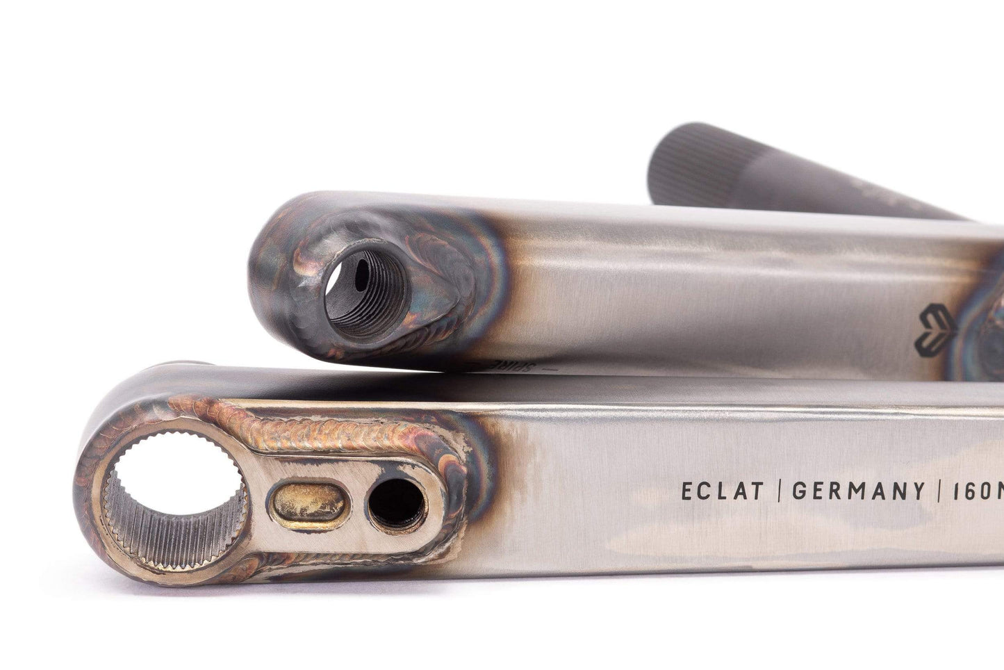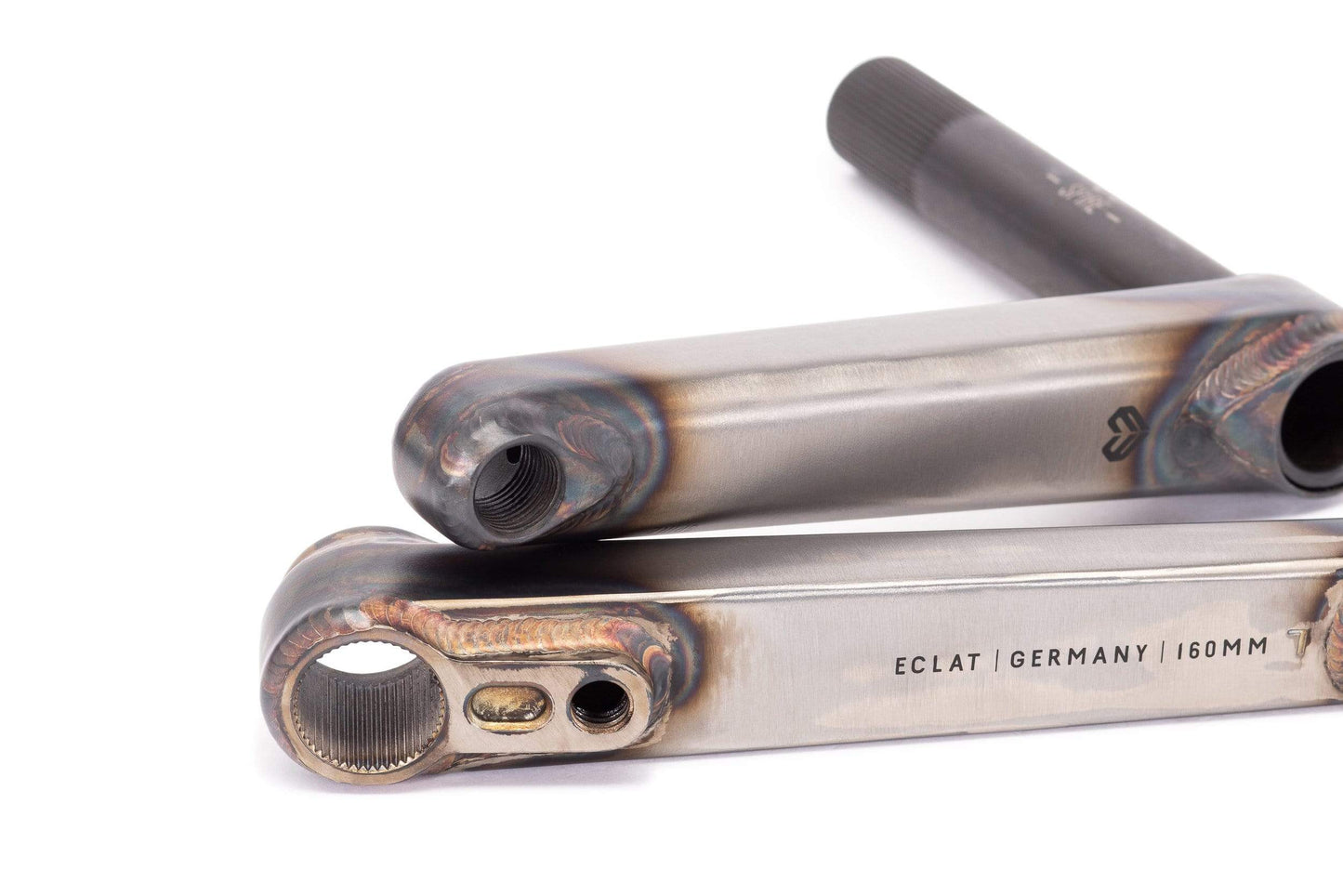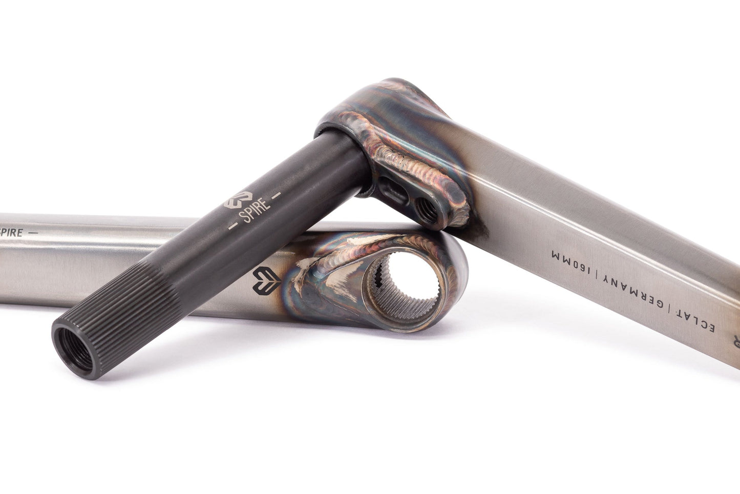 The idea behind the Eclat Spire Crank was to take the proven 2 & ½ piece system and combine it with a super tough, box-section arm design that will remain incredibly stiff and dent resistant. Black or Raw 160, 170 or 175mm arms.