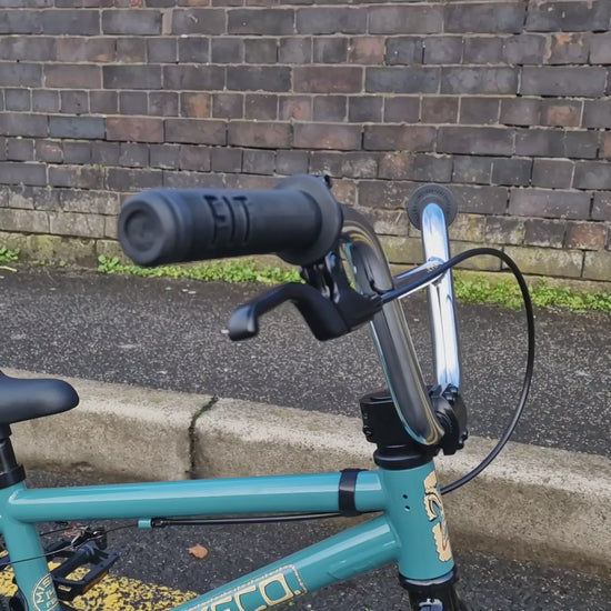 Small diameter handle grips and a short reach brake lever help keep young riders in control. Low tension U-brake springs and a linear brake cable make slowing down easier while a longer 200mm seat post for 2026 allows for more adjustability. We have also switched from 19mm rear axle nuts to 17mm to allow riders to use smaller diameter pegs. A lot of small details making for one big improvement.