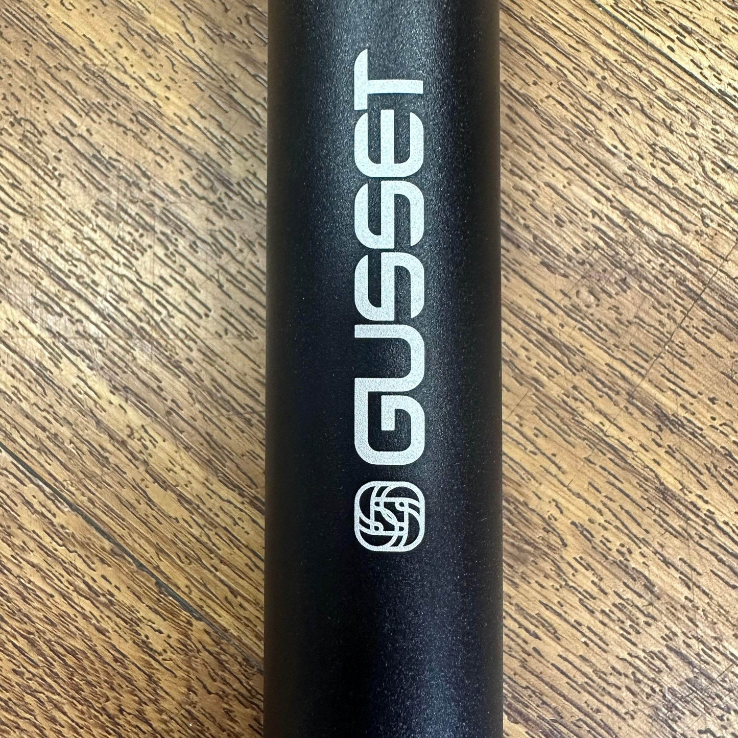 Laser-etched Gusset logo.