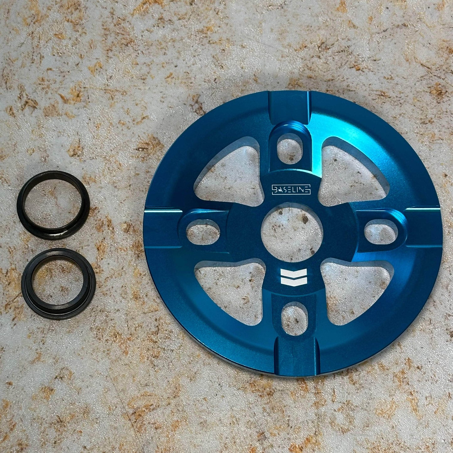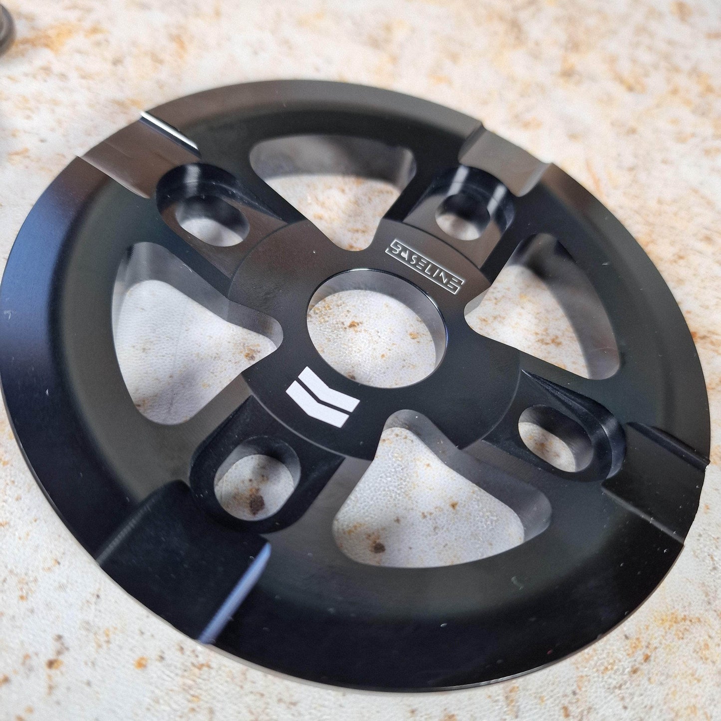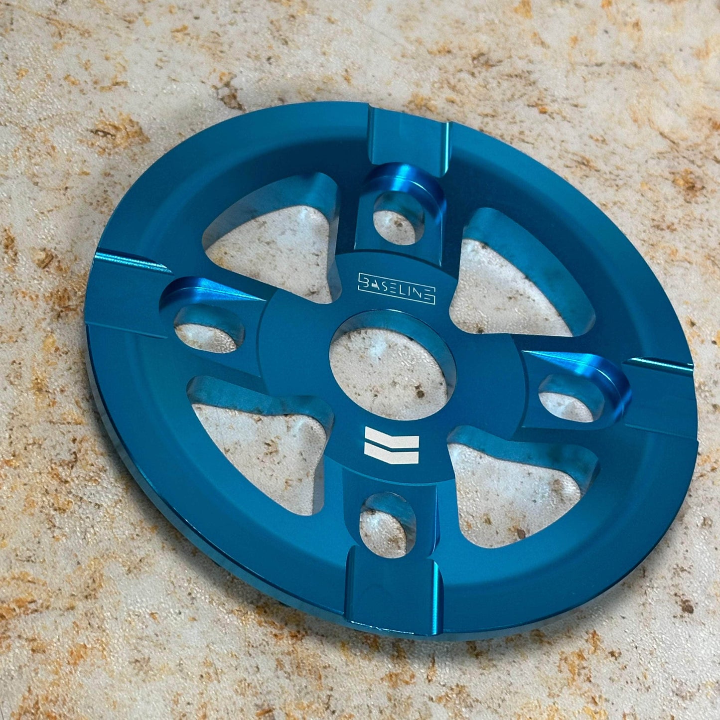 With today's ever-advancing tricks and usage, a guard sprocket is a must in the streets, not just for tricks, but to save your chain life. Whether the crank arm is dragging, bending or the sprocket is jammed, the baseline guard sprocket has a 6mm thick 6061 CNC aluminum design with 4 bolt holes for extra durability.