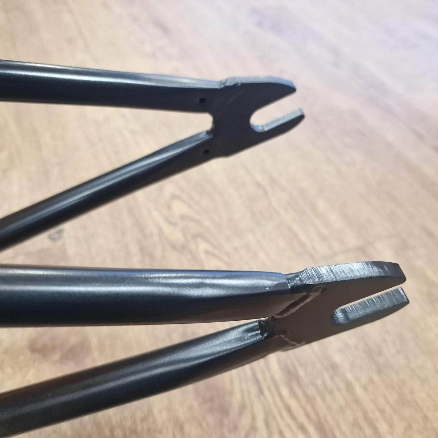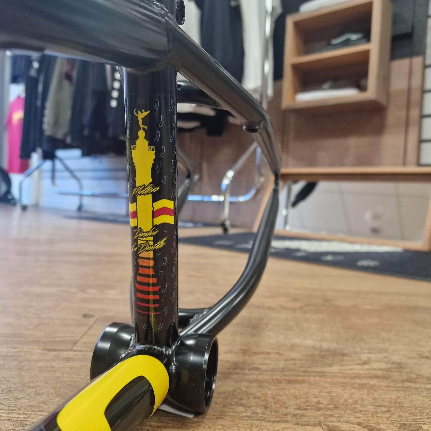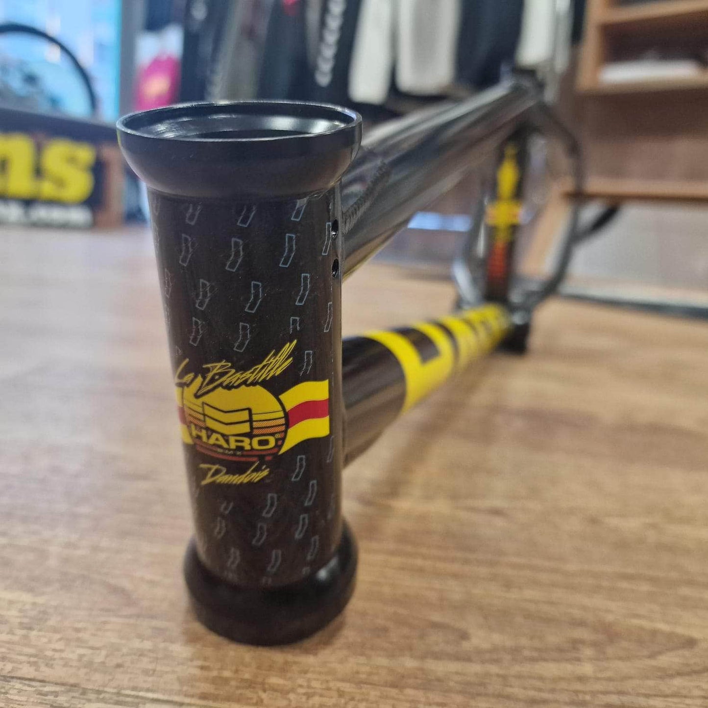 Here is Matthias Dandois' Pro model signature "La Bastille" Haro frame and whilst Matthias can ride anything he's best known for his flatland, so La Bastille is available in two short 19.5" and 20.25" toptubes and a 21" inch frame as well. Of course it's a full 40130 chromoly frame with integrated head tube and "hour glass" mid BB shell, double butted top and down tubes. Butted and tapered seat stays and chain stays to make it easier for foot placement on the rear. Heat treated head tube, BB shell and 5mm CNC machined dropouts Welded integrated seat post clamp and fully removable brake mounts and cable guides. This is the perfect responsive street/flatland frame.