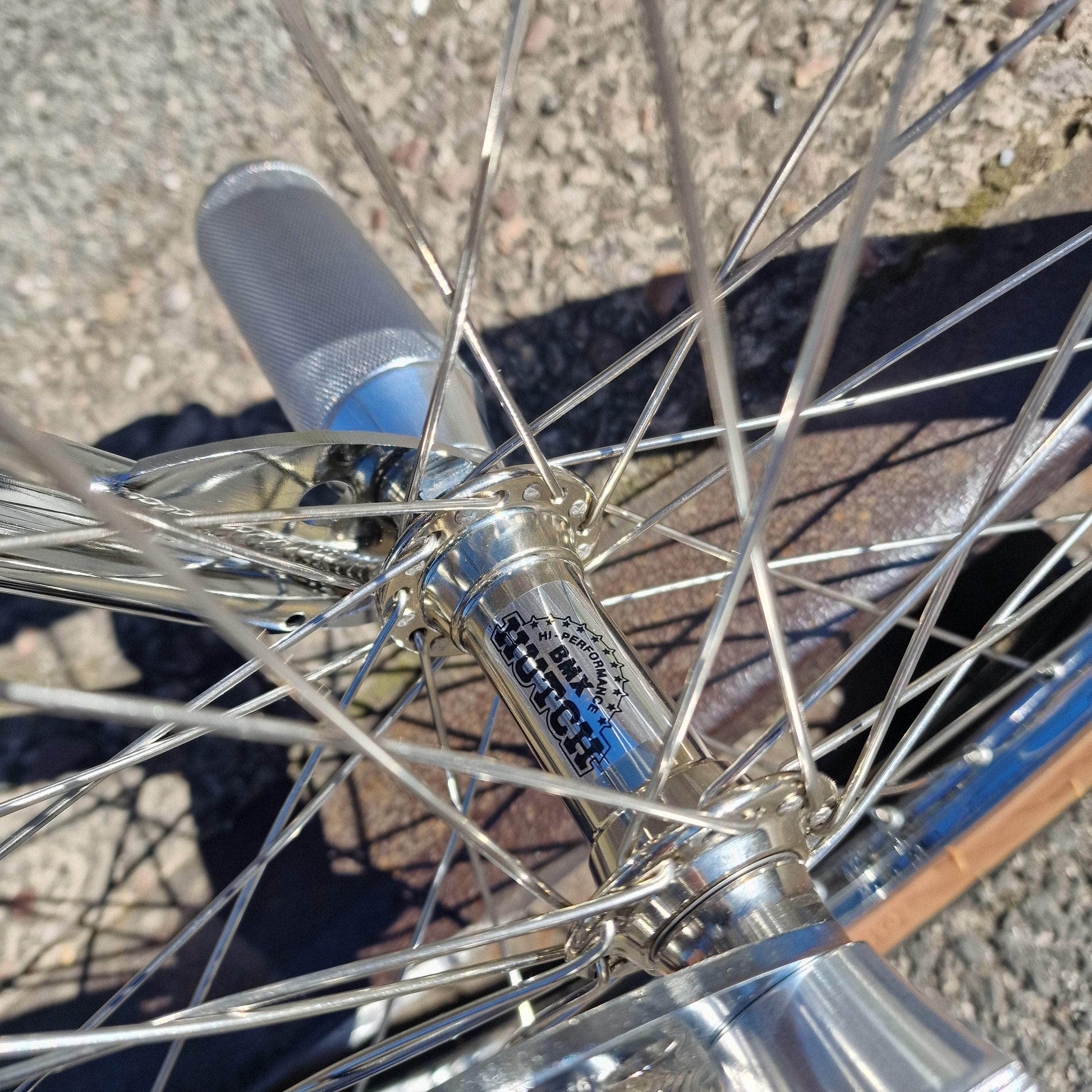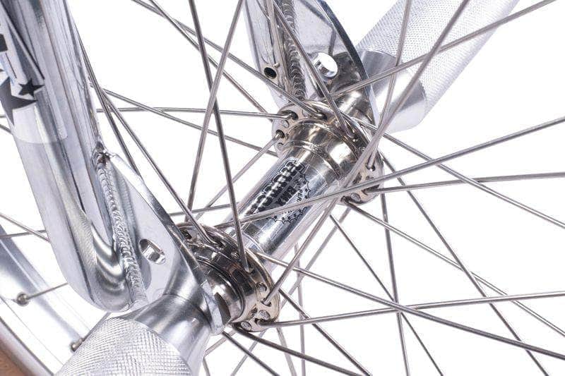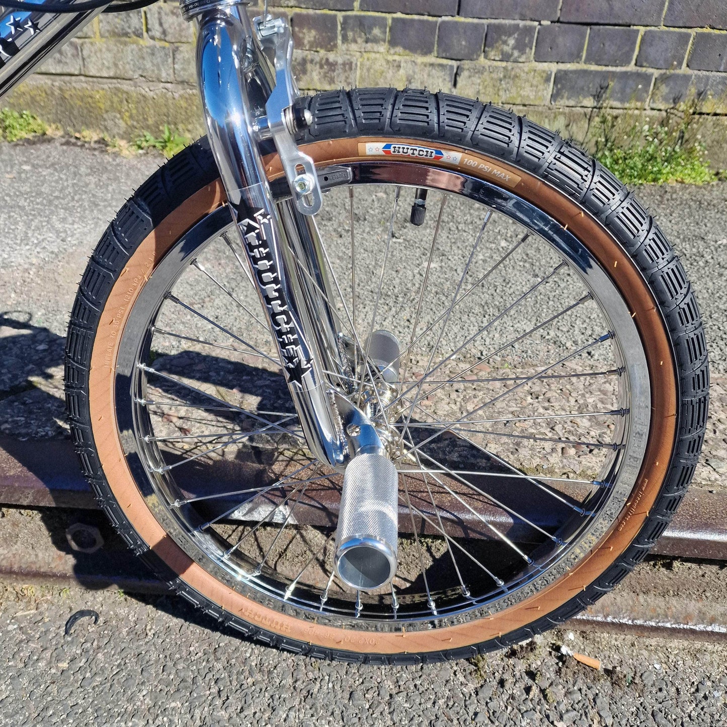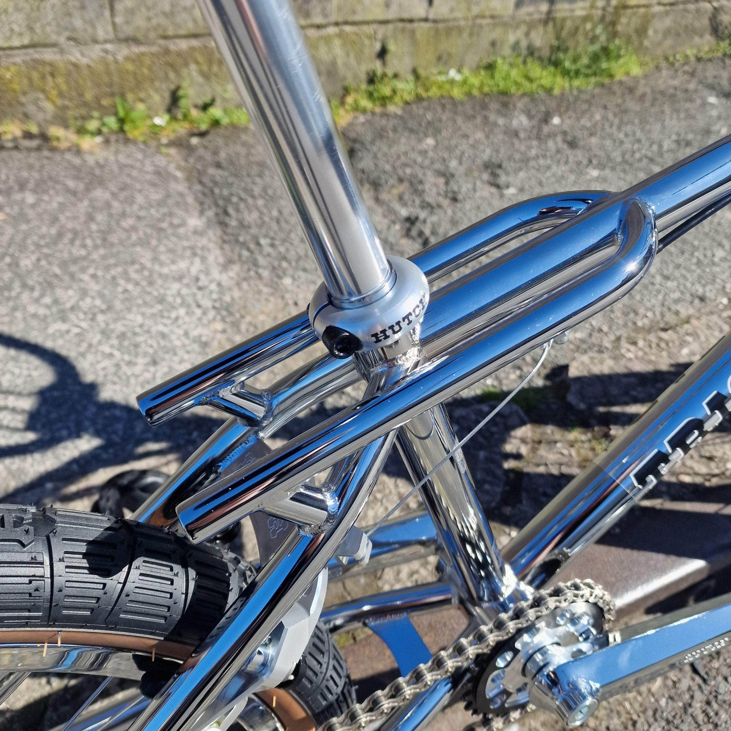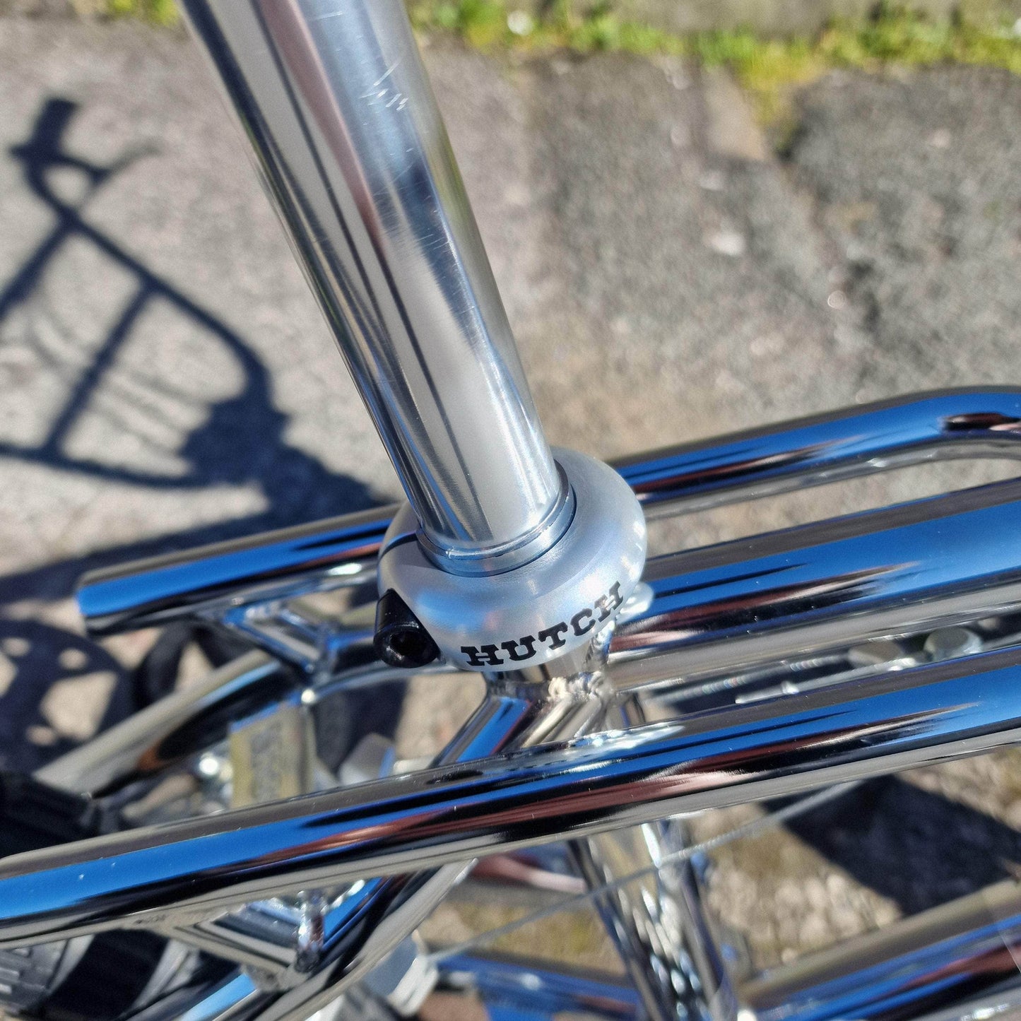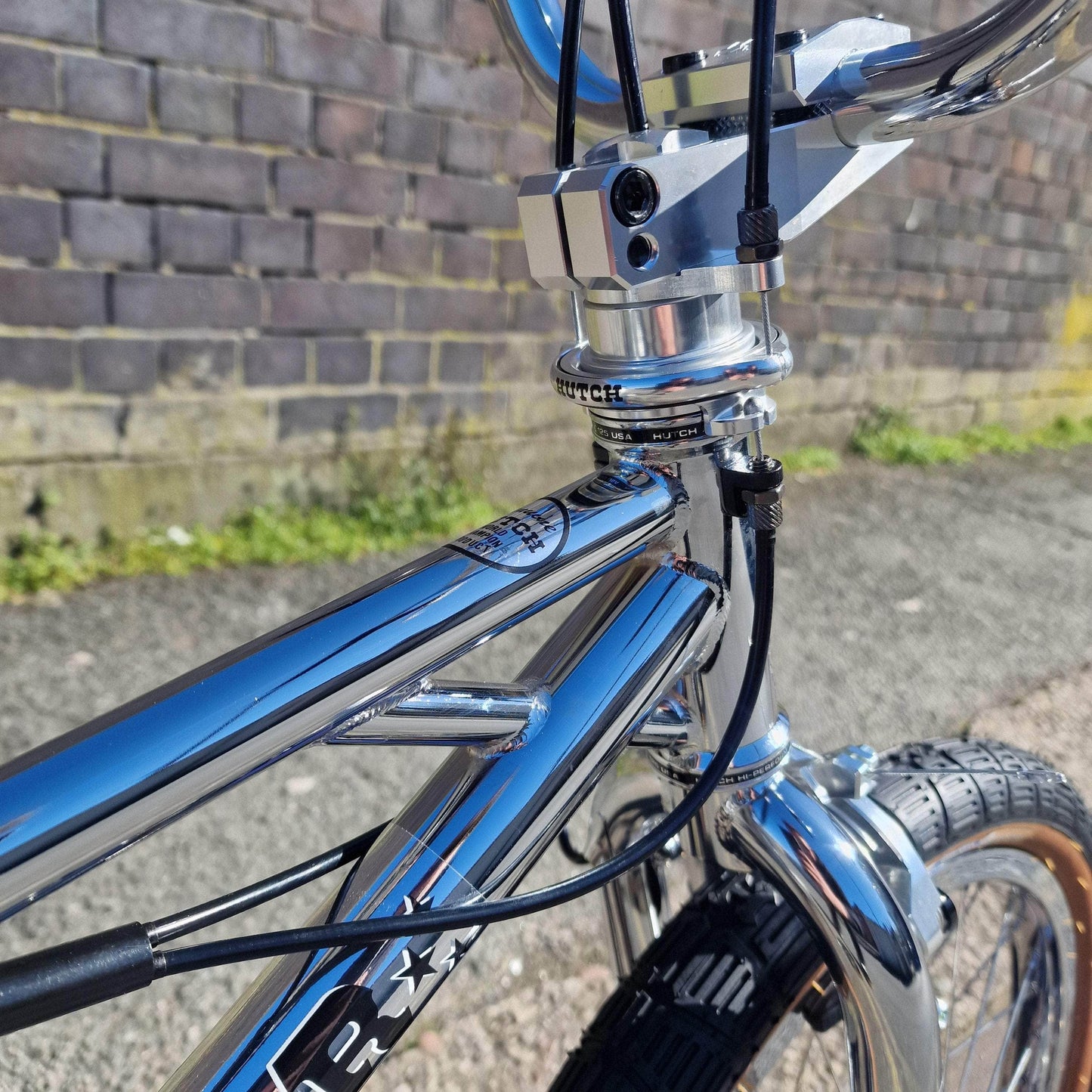 Introducing the NEW Hutch Trick Star complete! It’s not just a bicycle…it’s a work of art! The Hutch Trick Star is a chrome-plated masterpiece of engineering and design that comes in 20” and 26” wheel sizes. Almost every part on this bicycle is Hutch-specific, directly-influenced by its 1980’s predecessor. Nope, no “catalog” parts with a brand name slapped on like others do. Virtually every component was developed from scratch by Hutch and manufactured with custom tooling! The Hutch line of complete bicycles raises the bar above all other retro-style completes ever made. Finally, if you wanted the best…now you’ve found THE BEST!