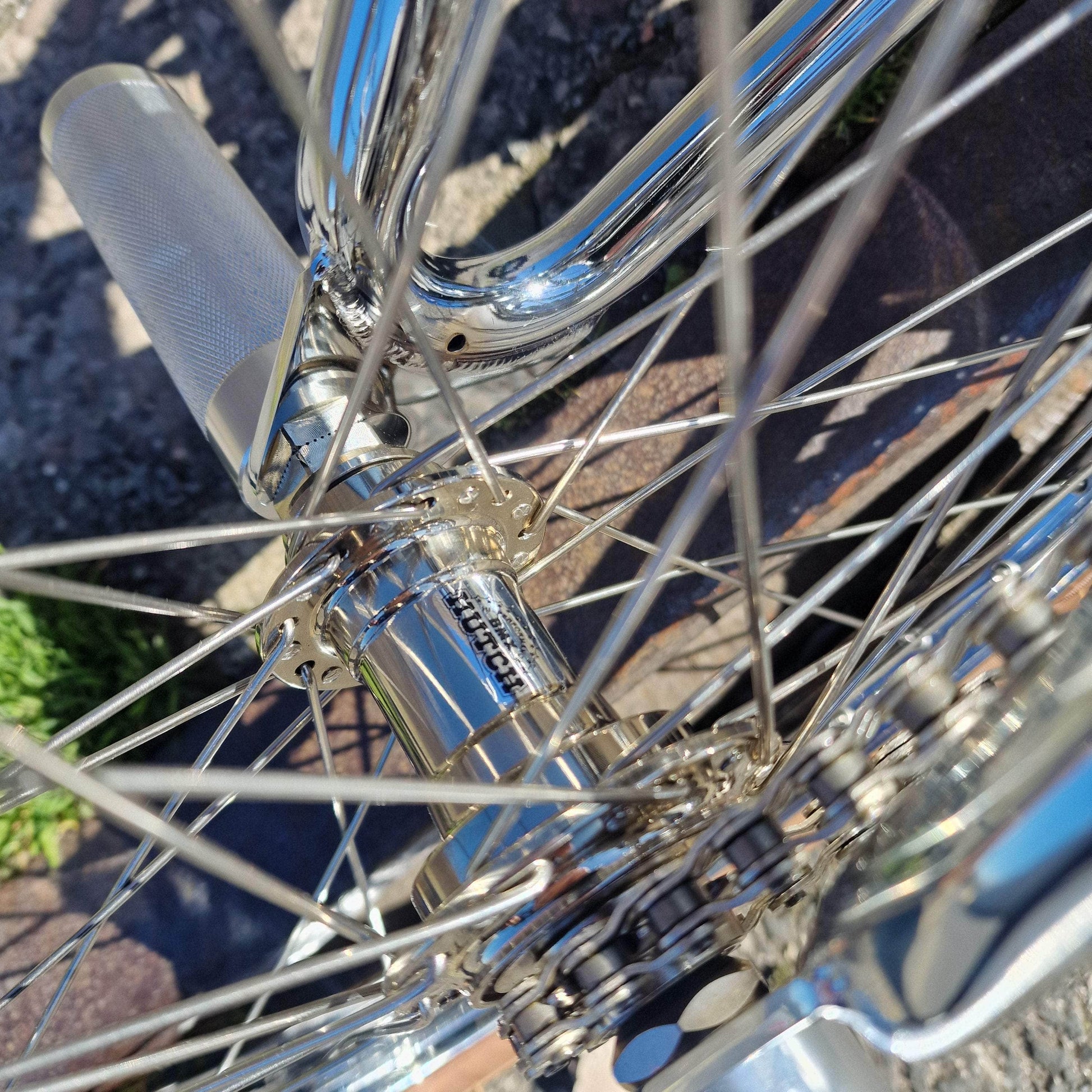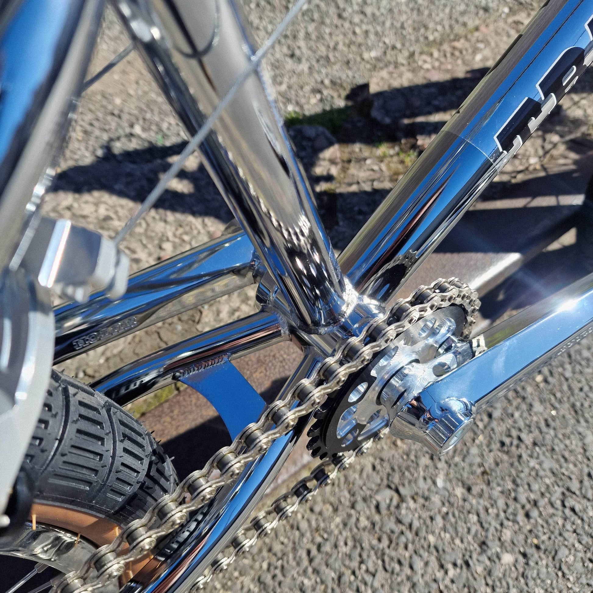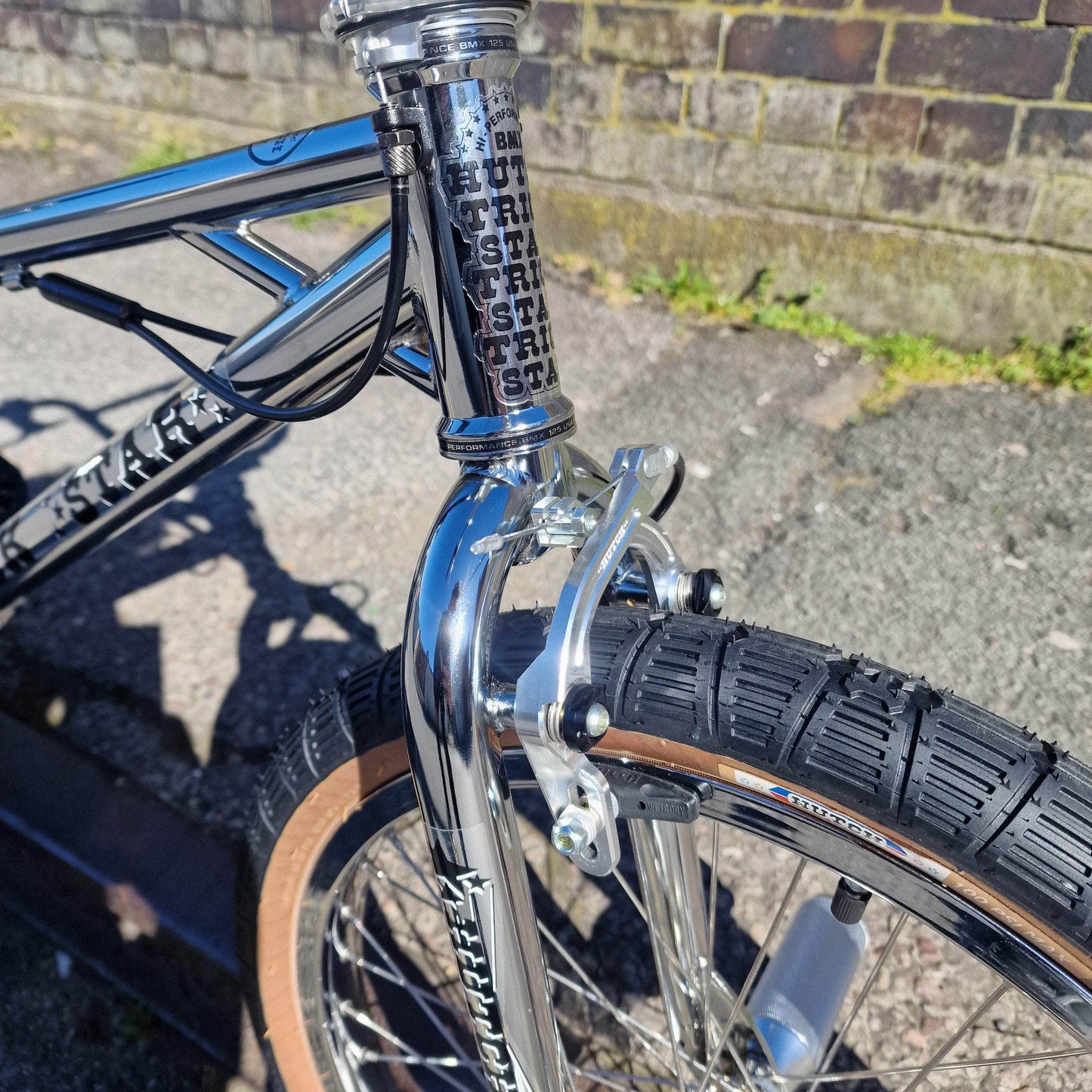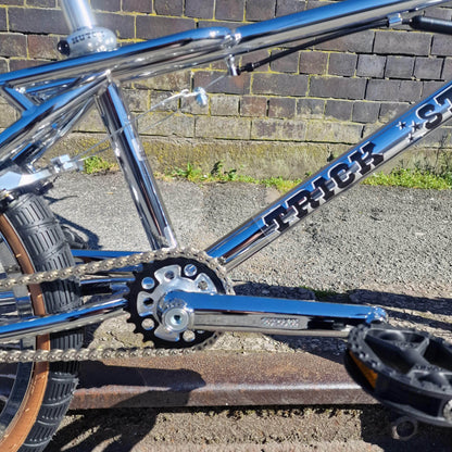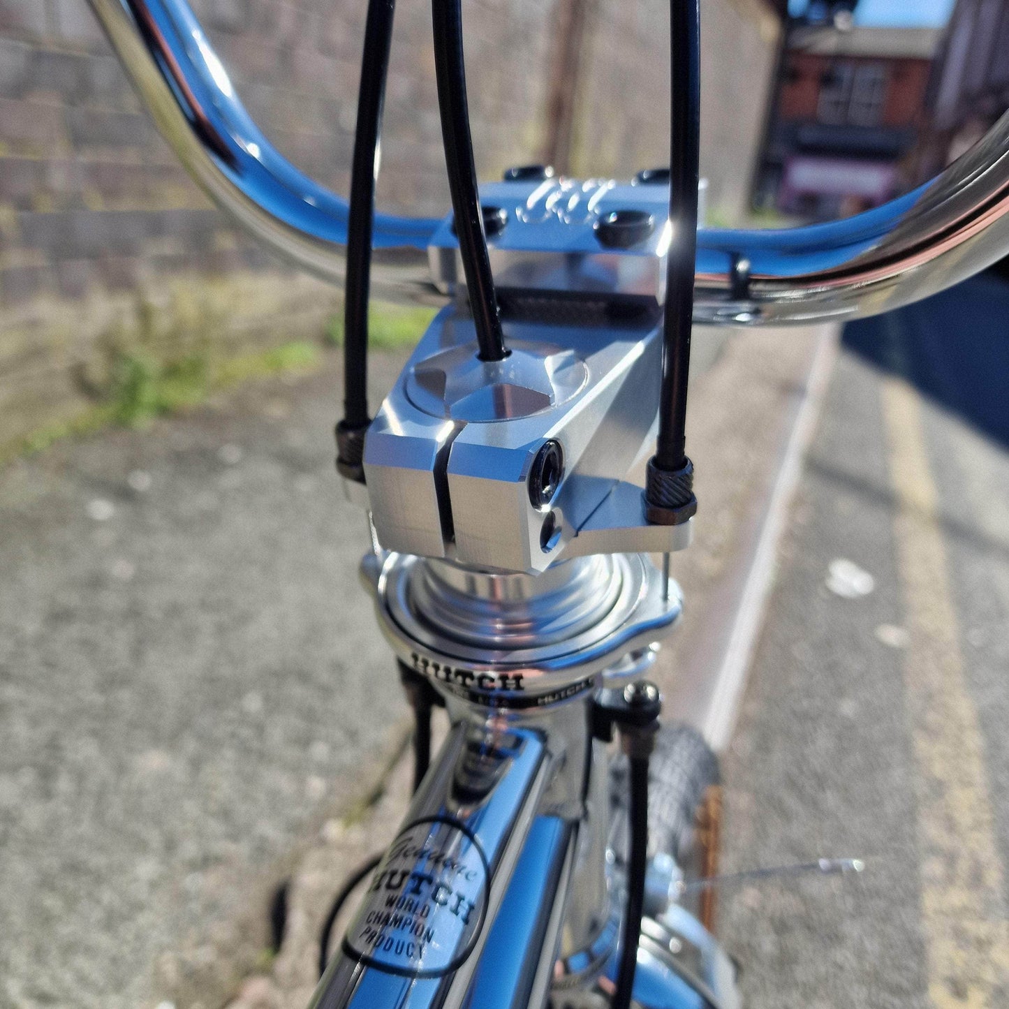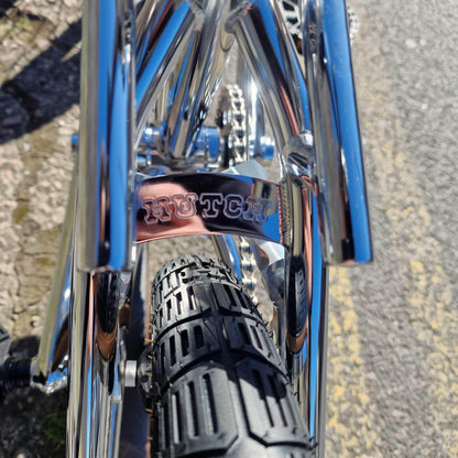 Introducing the NEW Hutch Trick Star complete! It’s not just a bicycle…it’s a work of art! The Hutch Trick Star is a chrome-plated masterpiece of engineering and design that comes in 20” and 26” wheel sizes. Almost every part on this bicycle is Hutch-specific, directly-influenced by its 1980’s predecessor. Nope, no “catalog” parts with a brand name slapped on like others do. Virtually every component was developed from scratch by Hutch and manufactured with custom tooling! The Hutch line of complete bicycles raises the bar above all other retro-style completes ever made. Finally, if you wanted the best…now you’ve found THE BEST!
