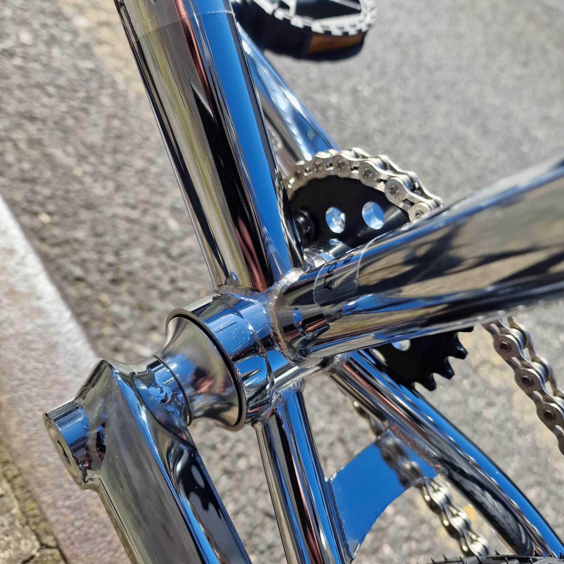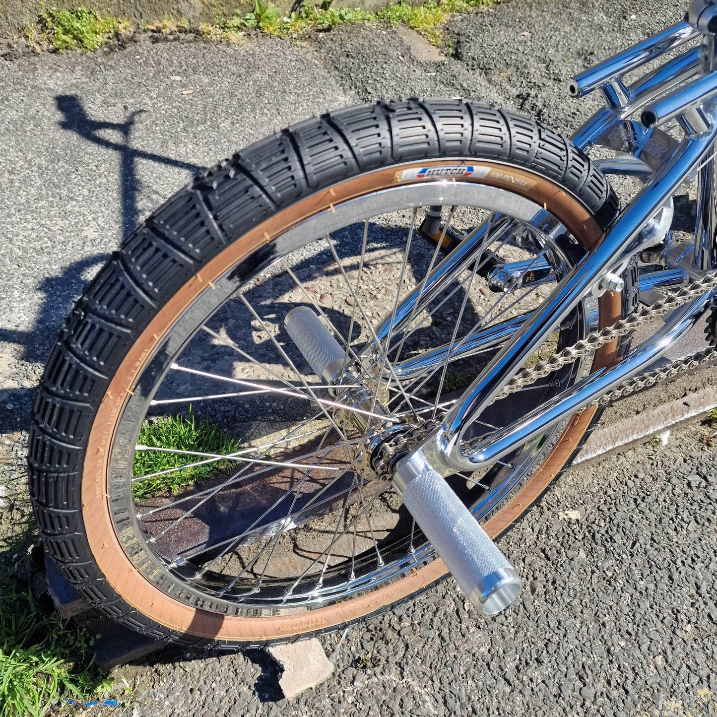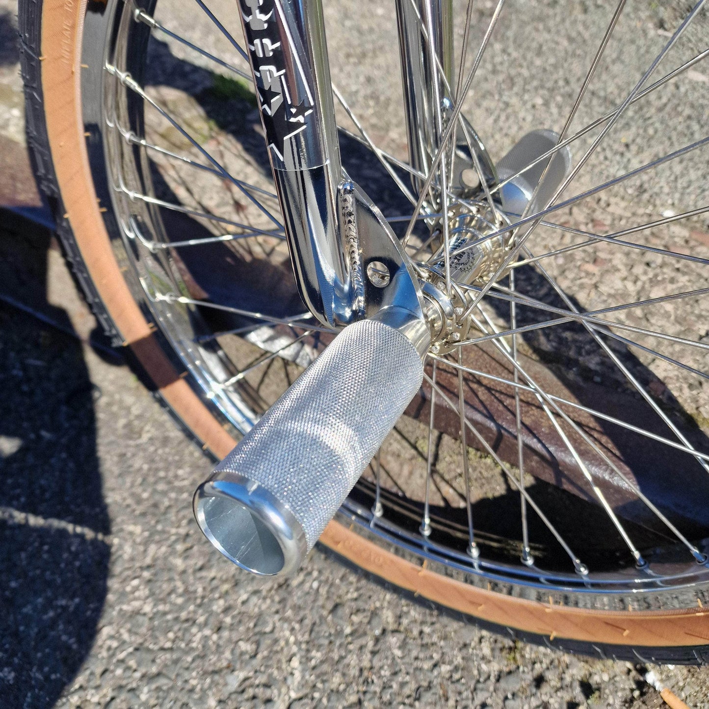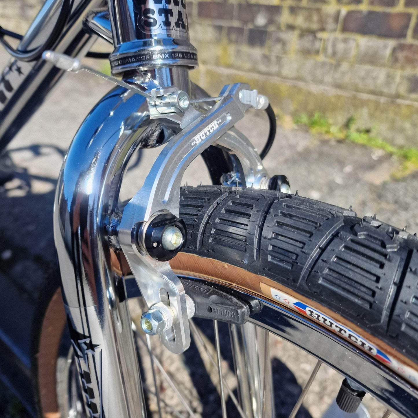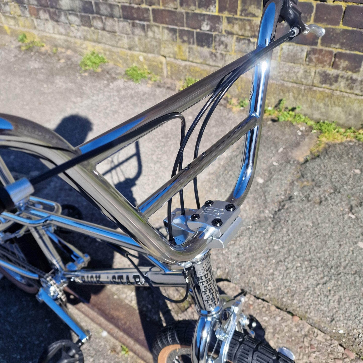 Introducing the NEW Hutch Trick Star complete! It’s not just a bicycle…it’s a work of art! The Hutch Trick Star is a chrome-plated masterpiece of engineering and design that comes in 20” and 26” wheel sizes. Almost every part on this bicycle is Hutch-specific, directly-influenced by its 1980’s predecessor. Nope, no “catalog” parts with a brand name slapped on like others do. Virtually every component was developed from scratch by Hutch and manufactured with custom tooling! The Hutch line of complete bicycles raises the bar above all other retro-style completes ever made. Finally, if you wanted the best…now you’ve found THE BEST!