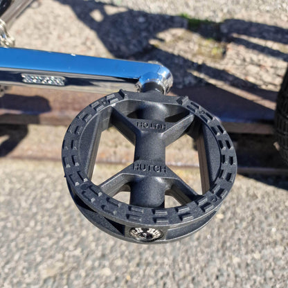 Wellgo with HUTCH center 9/16 BORON AXLE, ONE PIECE NYLON BODY BLK with OEM Reflector. |