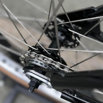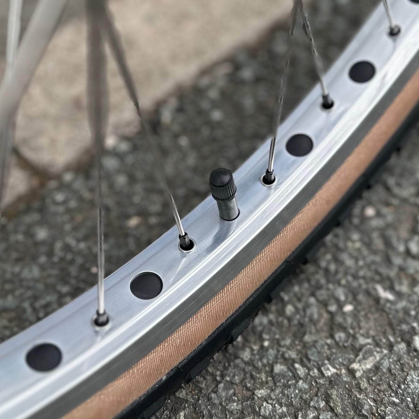 - Suntour Style High Flange hubs laced to Ironhead Holy Moly rims with Halo stainless spokes.
