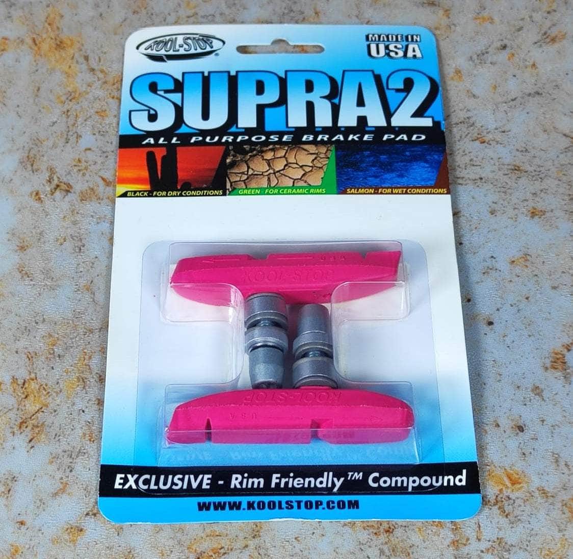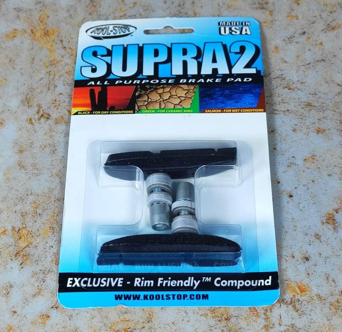 The Supra 2 is an updated design of the original Supra. This is one of the most popular rim pads and offers a thicker friction material for longer life. The pad with V brake washers can be fitted to the original "pad lock" gripper washer system which fits all types of brake systems.
