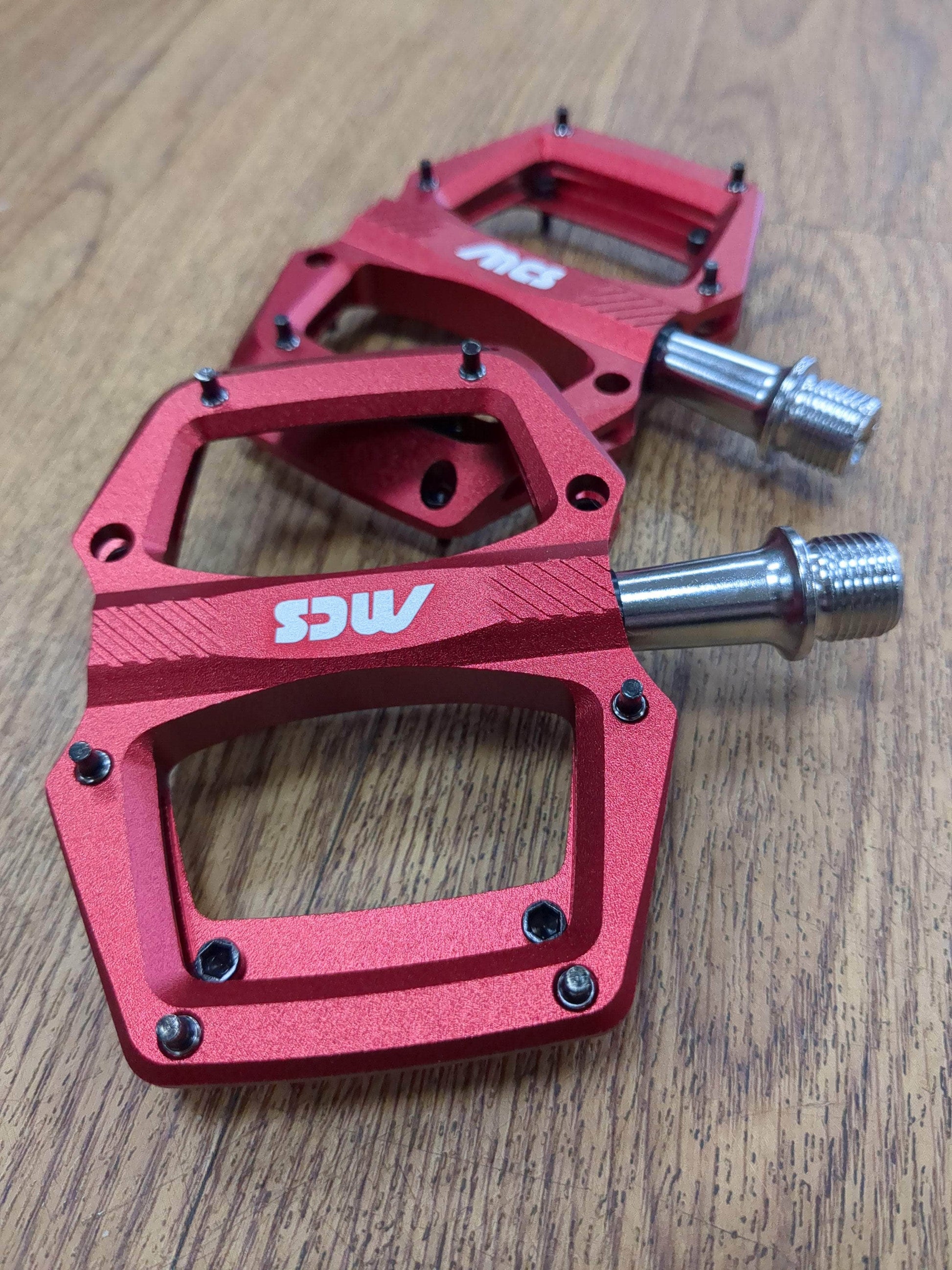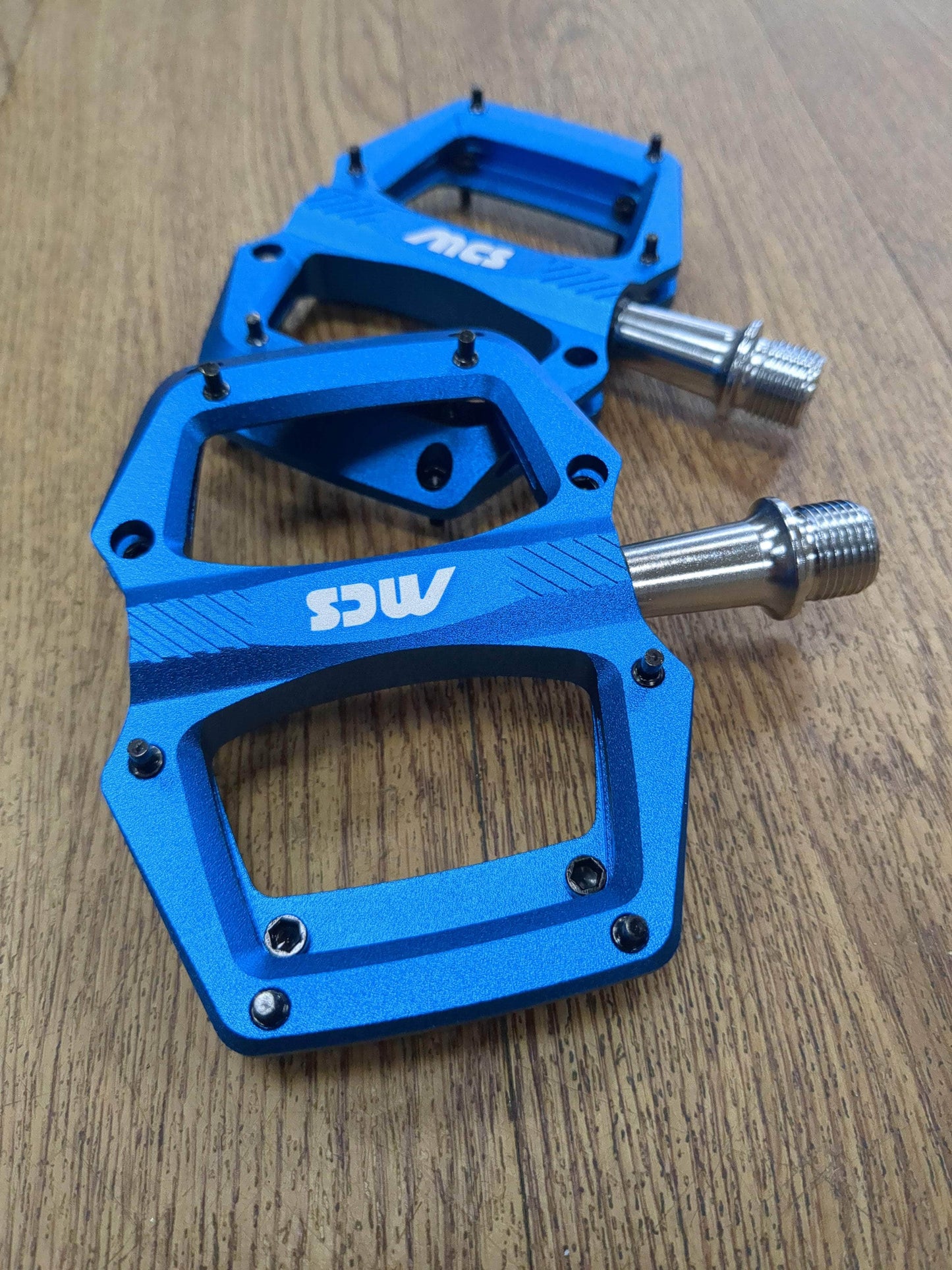 Super lightweight mini pedal by MCS to give your kid that extra advantage which could be crucial at the track. The UltraLite Sealed PC Platform 9/16" slim pedal comes with 20 replaceable screw pins per pedal (10 pins each side). Replacement pins not included.