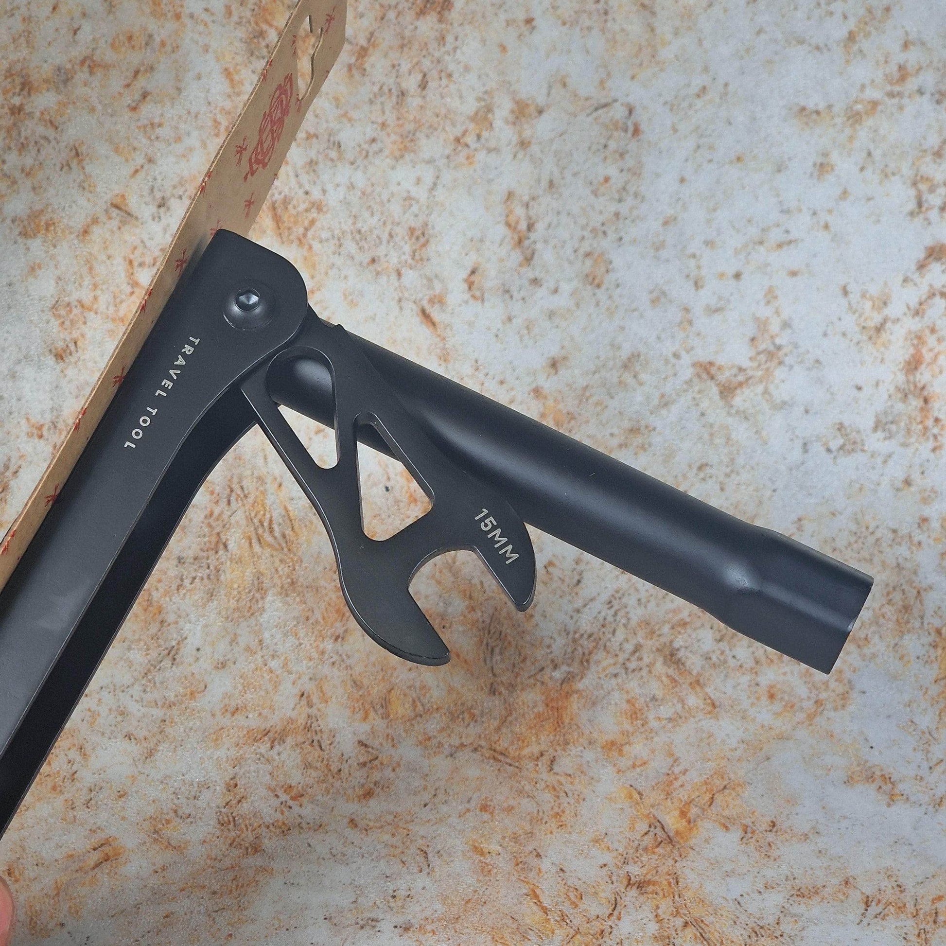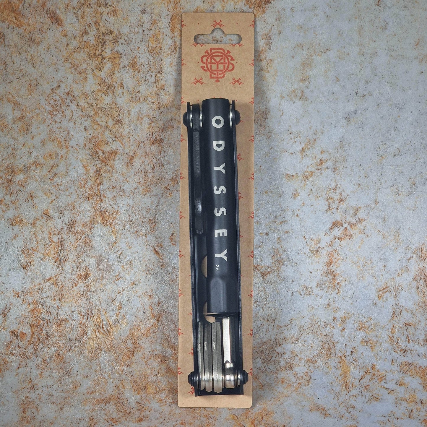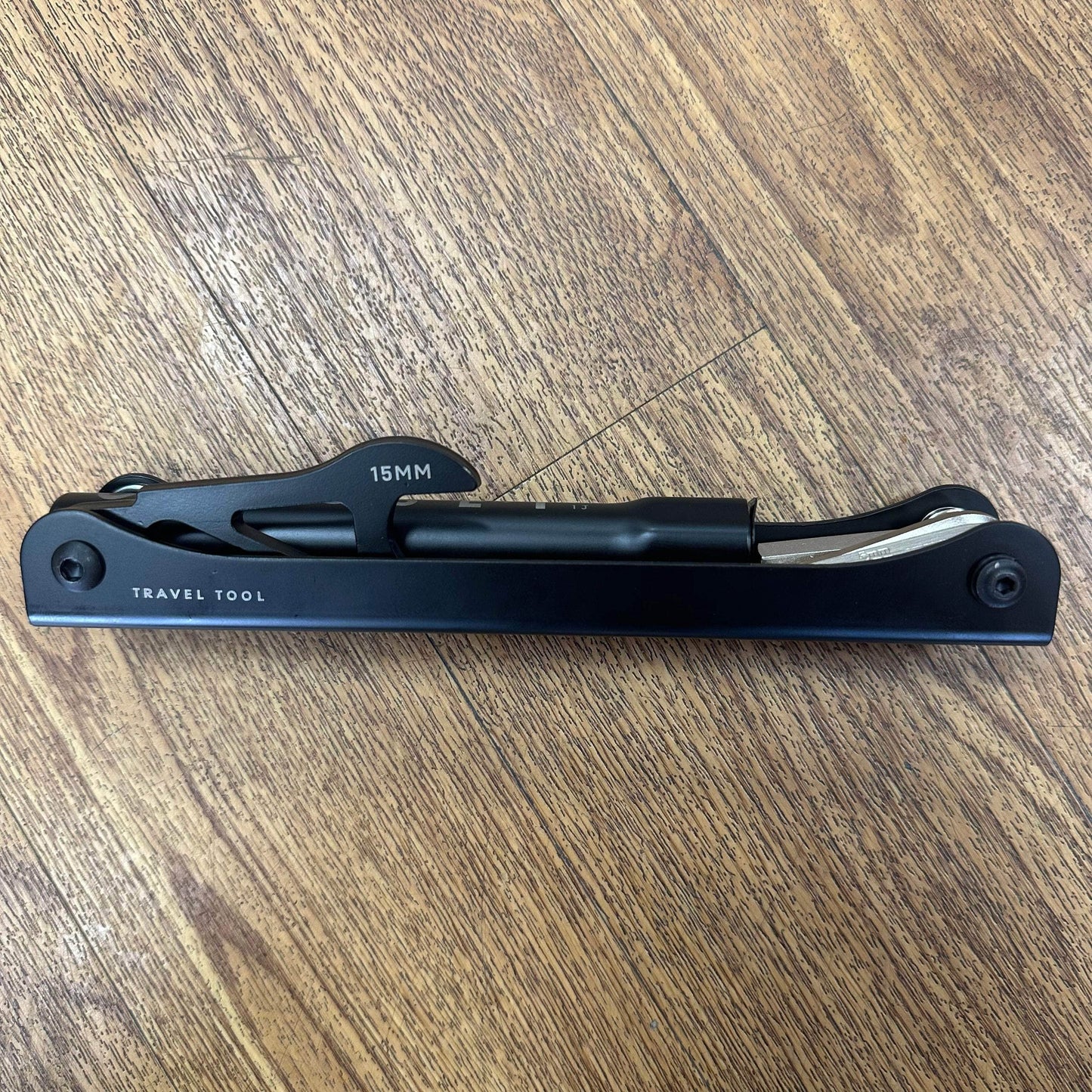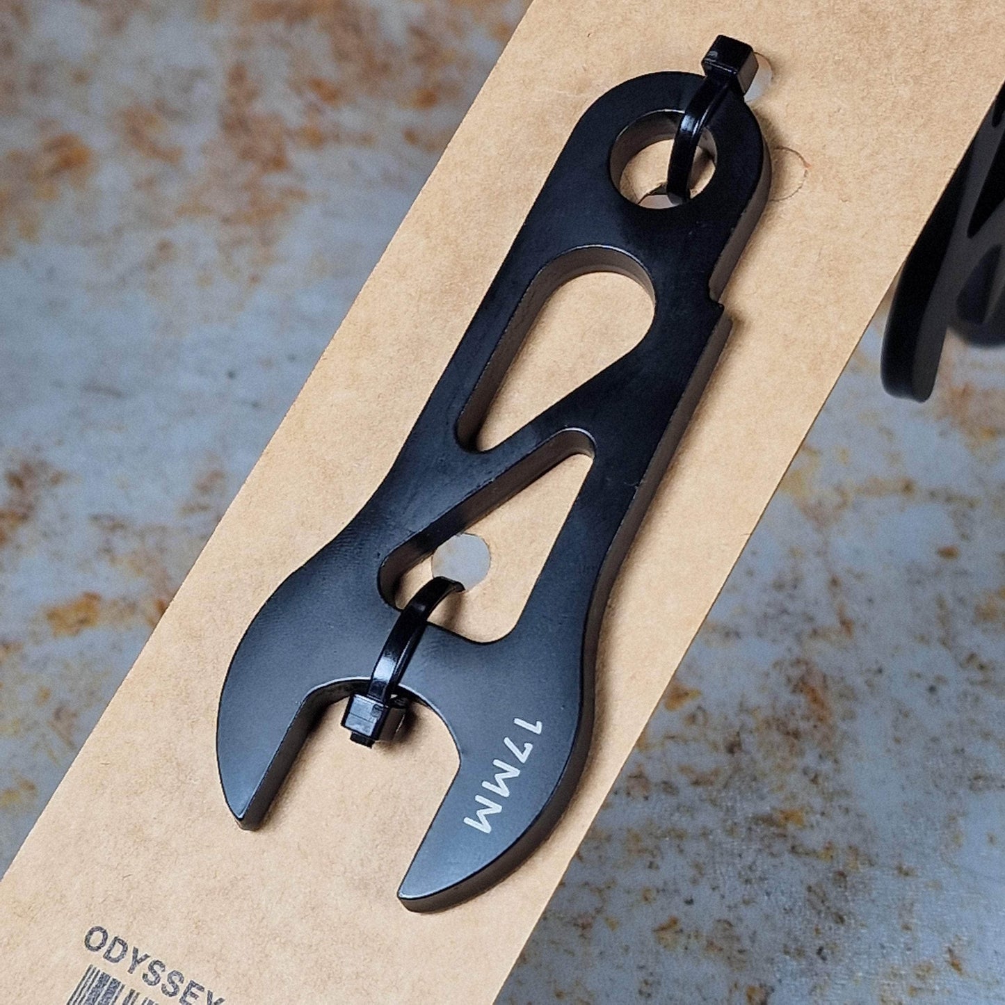 Odyssey's first multi-tool includes all the key bits to assemble and disassemble your bike on-the-go, and is one of the most affordable compact multi-tool available. Includes a 15mm and 17mm swappable pedal wrench, 4, 5, 6 and 8mm hex wrenches and a 17mm socket with an integrated storage compartment. The Travel Tool is light and easy to carry, but big enough to allow you to actually tighten everything down properly.