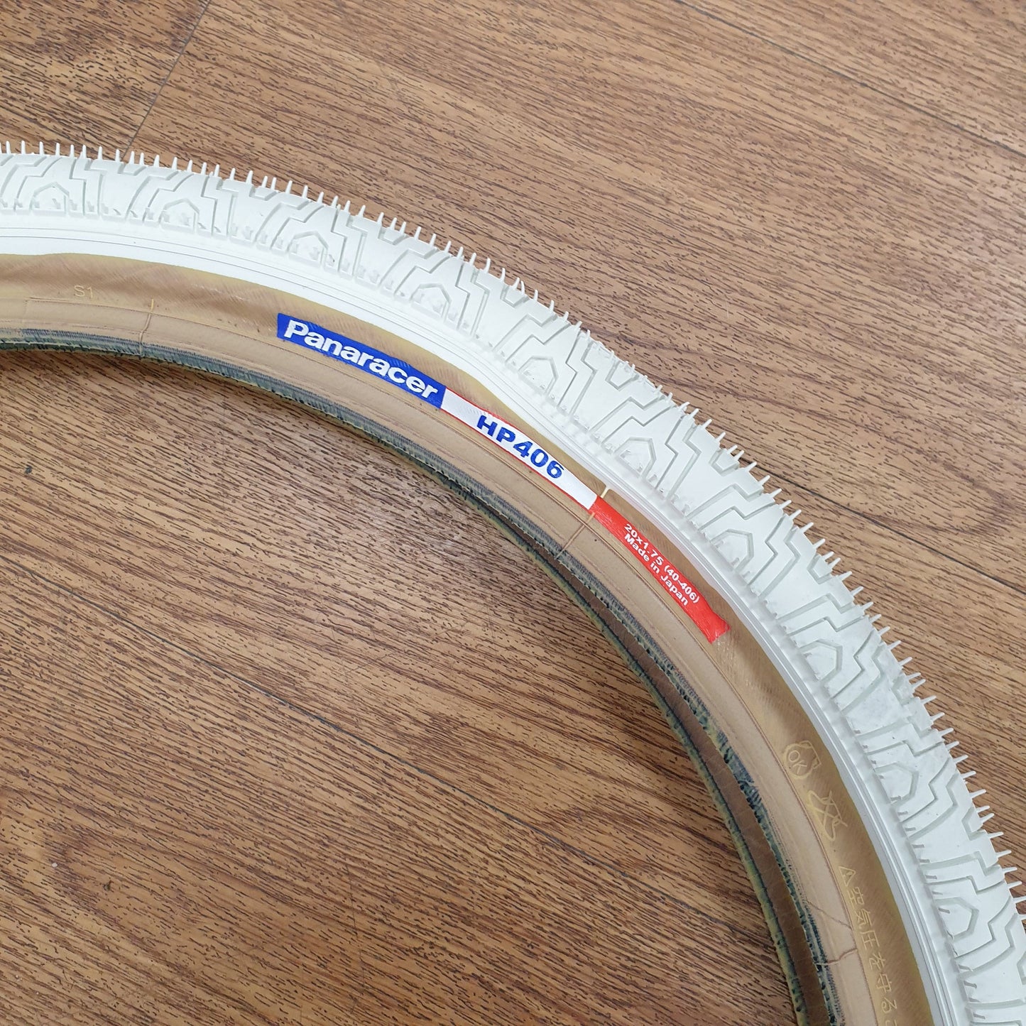 Panaracer lightweight skinwall HP-406 old school BMX freestyle tyre remade from the 1980's by Panaracer in black, blue, red or white, 20x1.75" size. These look awesome on all Old School BMX builds: from a Raleigh Burner to a Hutch Trick Star.