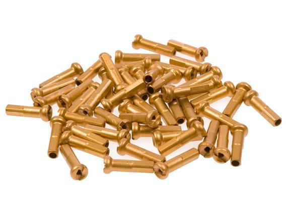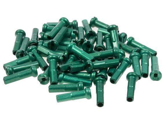 Pack of 50 Alloy spoke nipples, lighter than the standard brass nipples, reduces rolling weight. Black, blue, gold, green, silver or red.