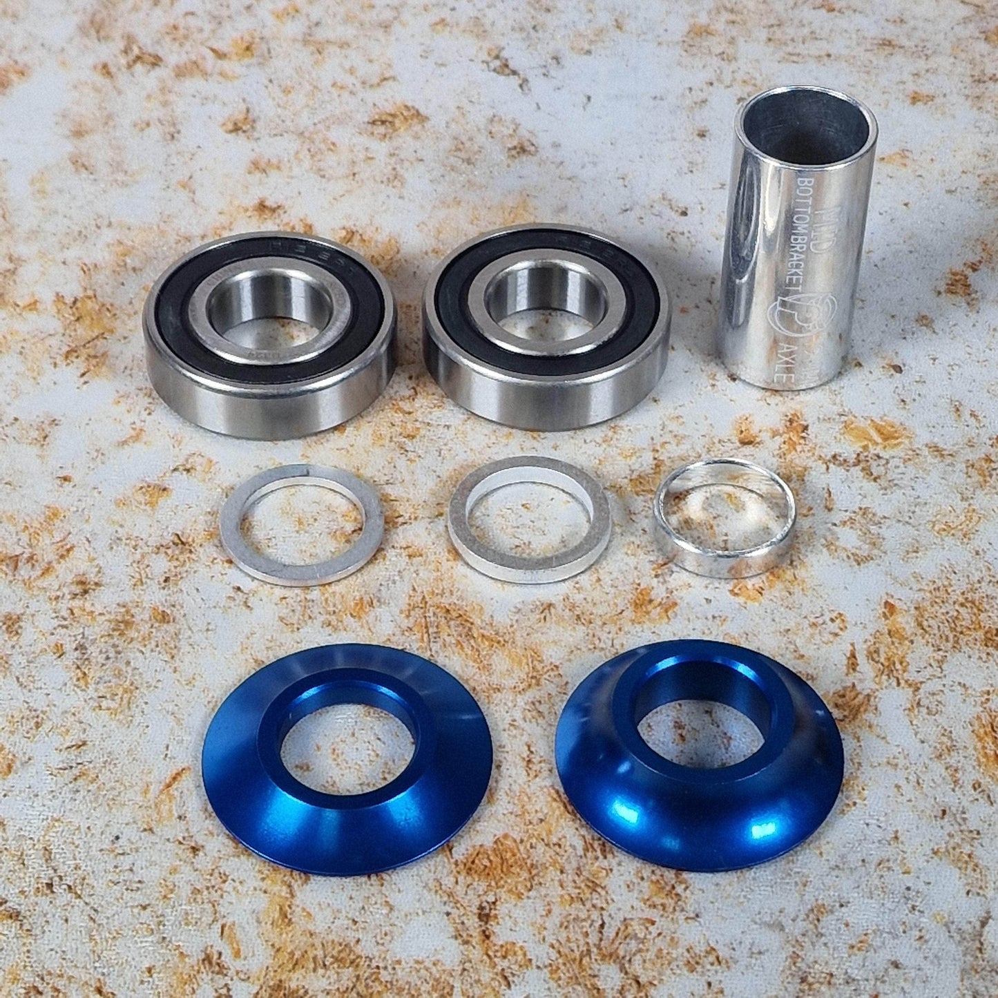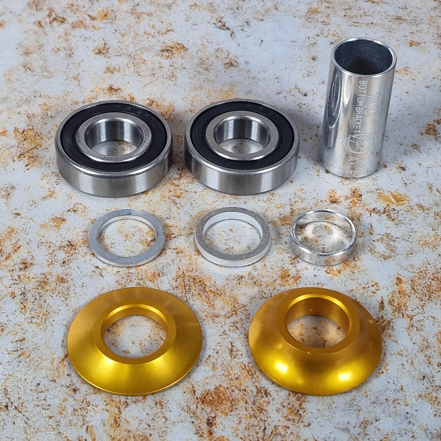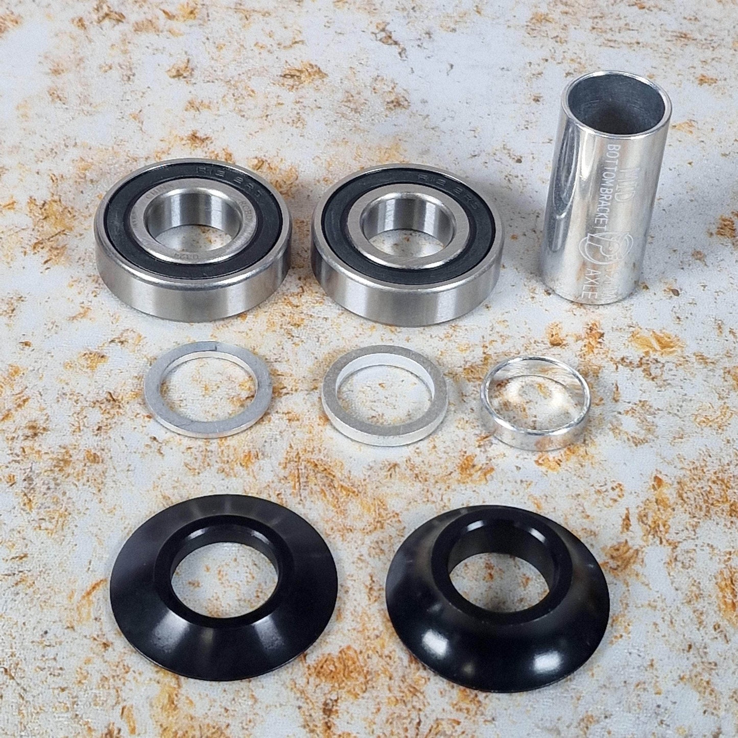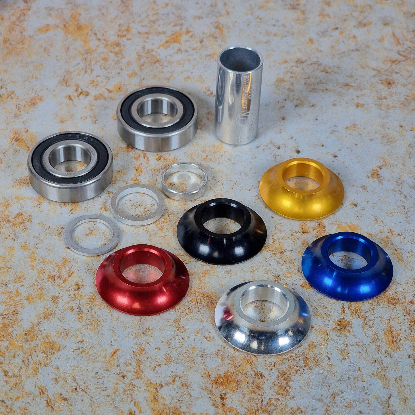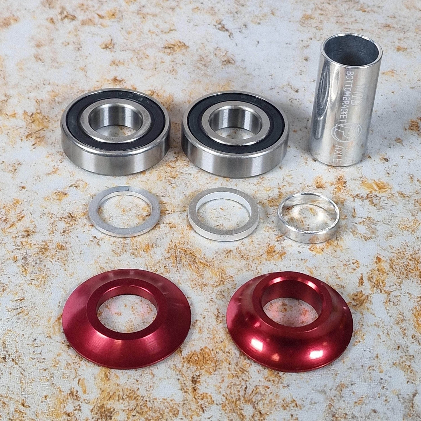 The Profile Racing Mid 19mm Bottom Bracket now comes with coloured bearing covers/spacers just like the US Hop Up kits. Made in USA, superior quality.