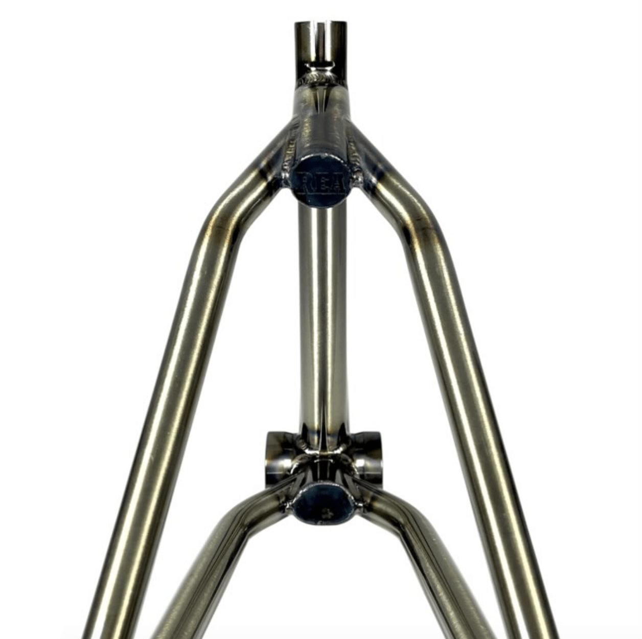 Mid-school disciple Aryei Levenson is an anomaly. His futuristic talent meets mid-school panache is quickly earning the NW-ripper a multi-generational reputation for radness. Despite his young age, REA has been riding S&Ms for over a decade and dude knows what he likes. Morphing the Black Magic and ATF and incorporating a double wishbone for that throwback steeze, Aryei has successfully designed a true Ride Everything Always frame aimed at riders who know their roots. Dirt, Street, Parks… the REA Frame – like the kid who designed it – can handle it all with ease (and steeze).