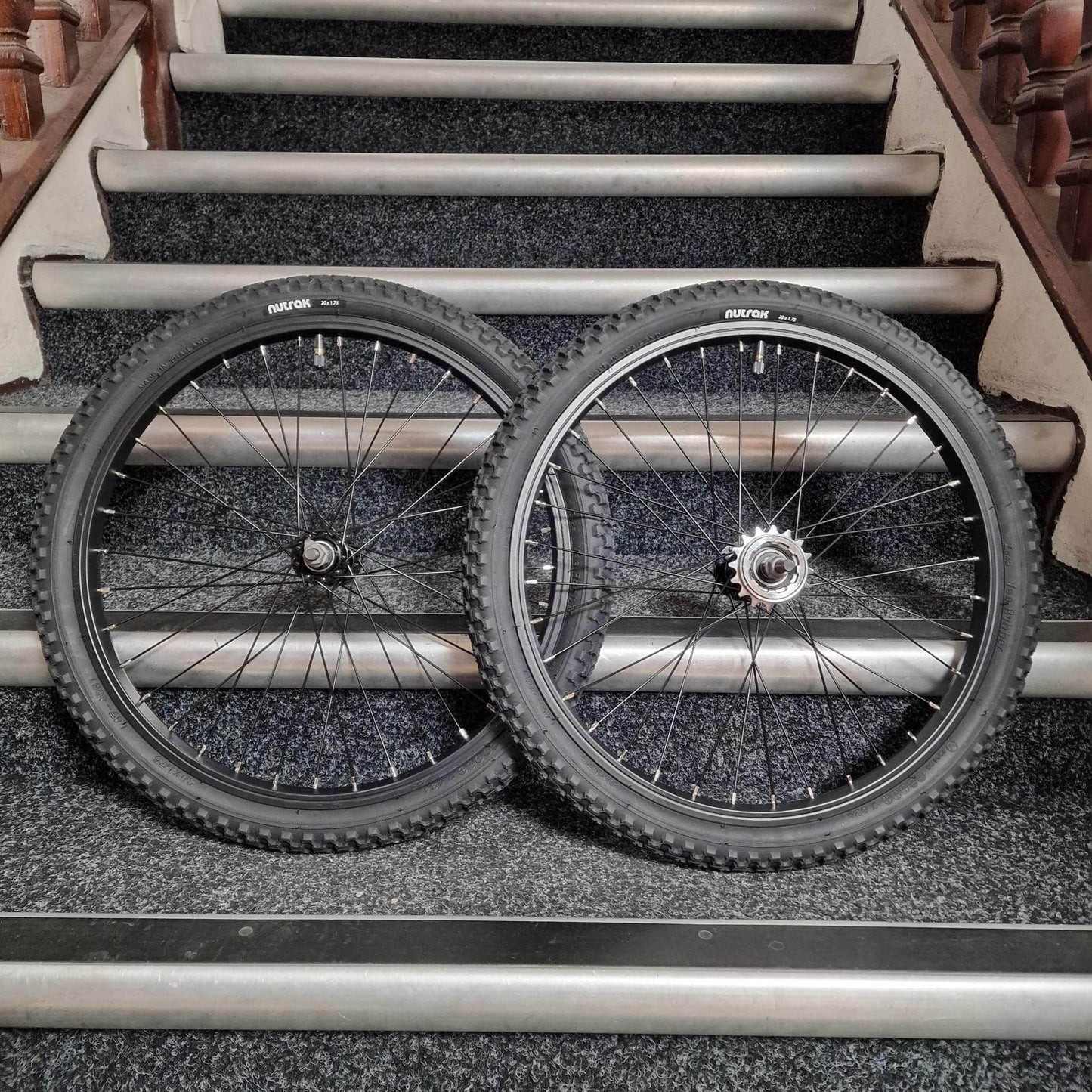Set of 20" old school alloy wheelsets (front & rear), with Nutrak Comp III tyres, tubes and a 16T freewheel pre-installed and inflated by us, saving you the job so they are ready to fit to your bike.