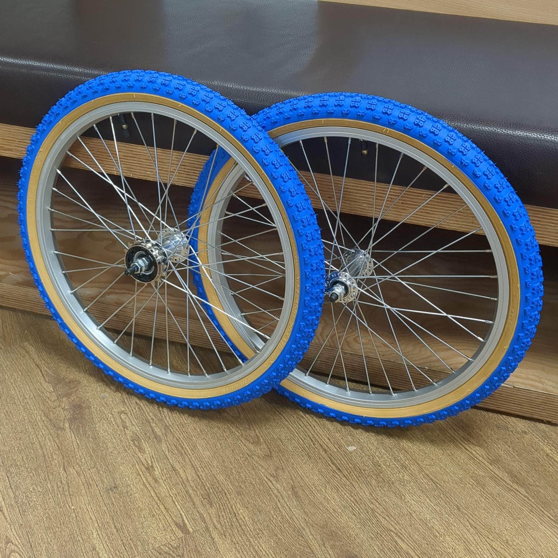 Complete 20" old school alloy wheelsets (front & rear), with Kenda K50 tyres, tubes and a 16T freewheel pre-installed and inflated by us, saving you all the hassle so they are ready to fit to your bike.