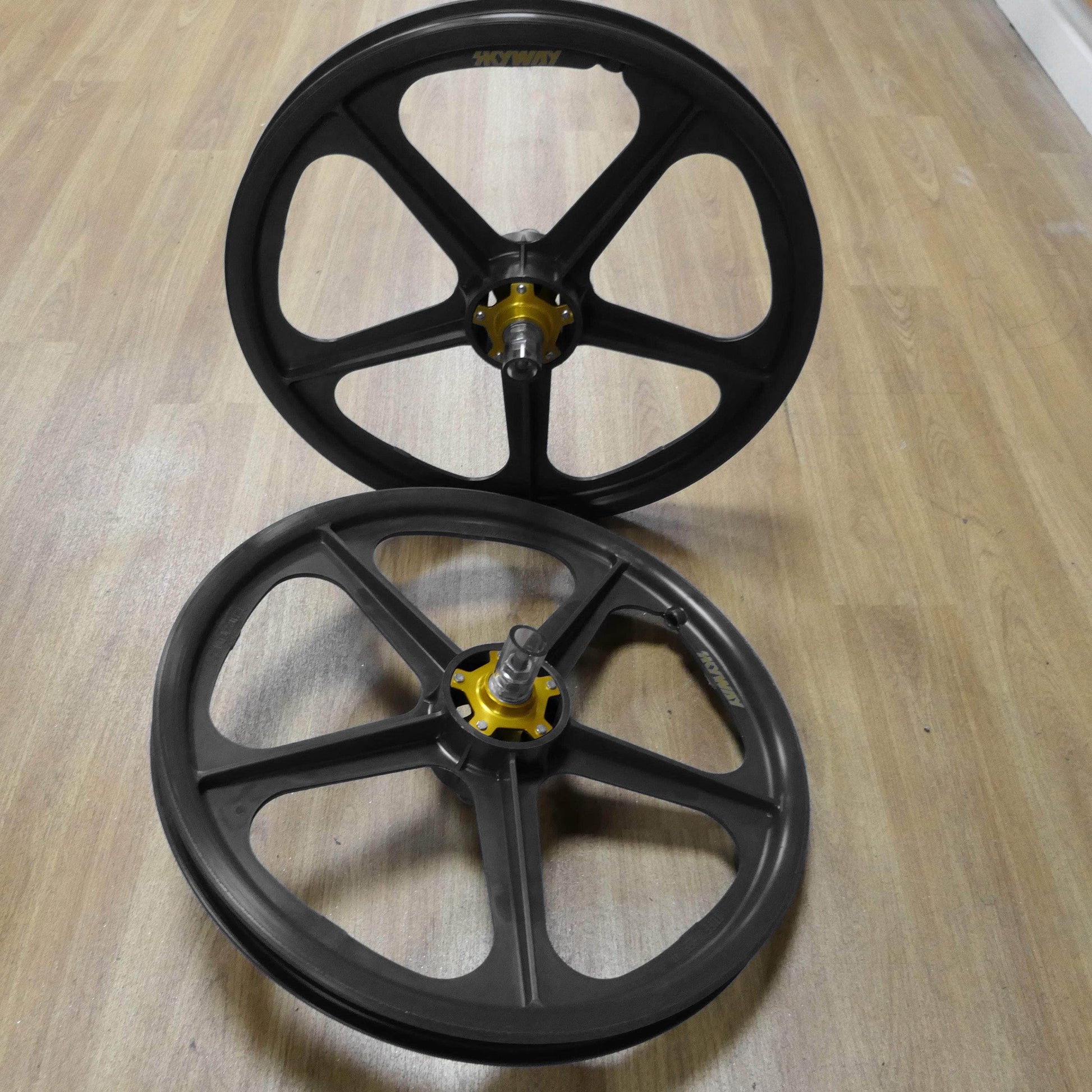 There simply is no more iconic 1980’s BMX product than Skyway Tuff Wheels. Skyway's original Tuff Wheel. Fast, smooth, and reliable; these Tuffs exceed the performance you have come to expect of genuine Skyway Tuff Wheels. Please see our other listings for other options: 9T, 24”, coaster brake, graphite, 6 spoke versions, etc.