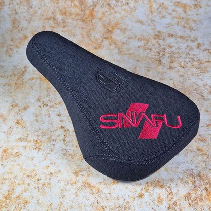 The Snafu Fat Pivotal seat is thick foam padded seat for extra comfort featuring a durable Kevlar top cover with embroidered Snafu logo, plastic bumpers under the nose and tail section, custom Snafu access patch.
