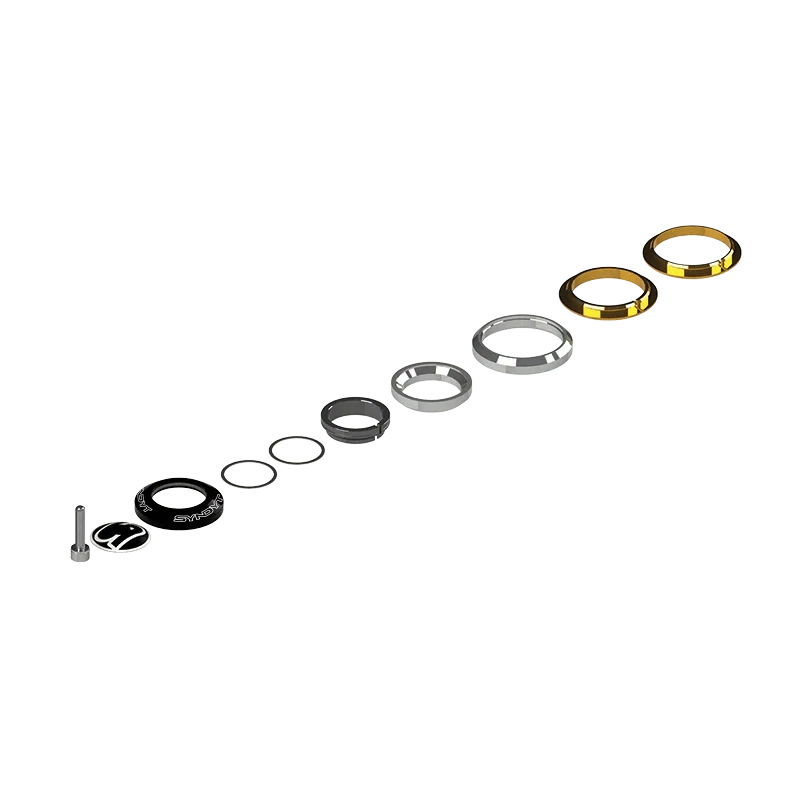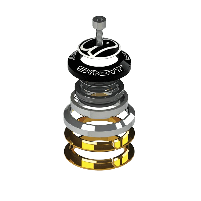 The Syndyt EXPERT Headset is CNC-machined from aluminum alloy and houses two sealed stainless steel cartridge bearings. It comes with two lower race options, one for a 1” lower steerer tube diameter and one for an oversized 1-1/8” lower steerer tube diameter.
