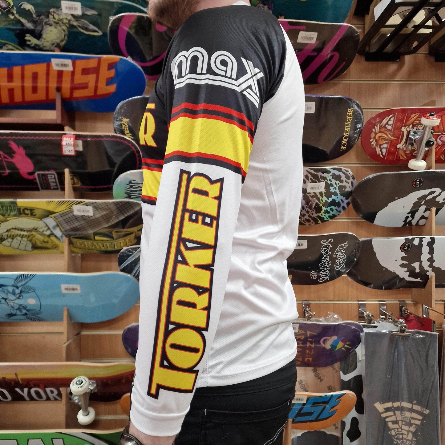 The Torker jersey worn by some of the greats... including Hollywood Mike Miranda & The Human Dragster - Tommy Brackens (AKA the Torker Twins), Richie Anderson, and over here in the UK freestyle team riders Terry Jenkins, Andy Irwin, Julian Parkinson & Andy Minshull - and racers Nathan Lunn, Chris Welsby, Craig Borrows, Tony Holland, John Lee and Alan Woods.