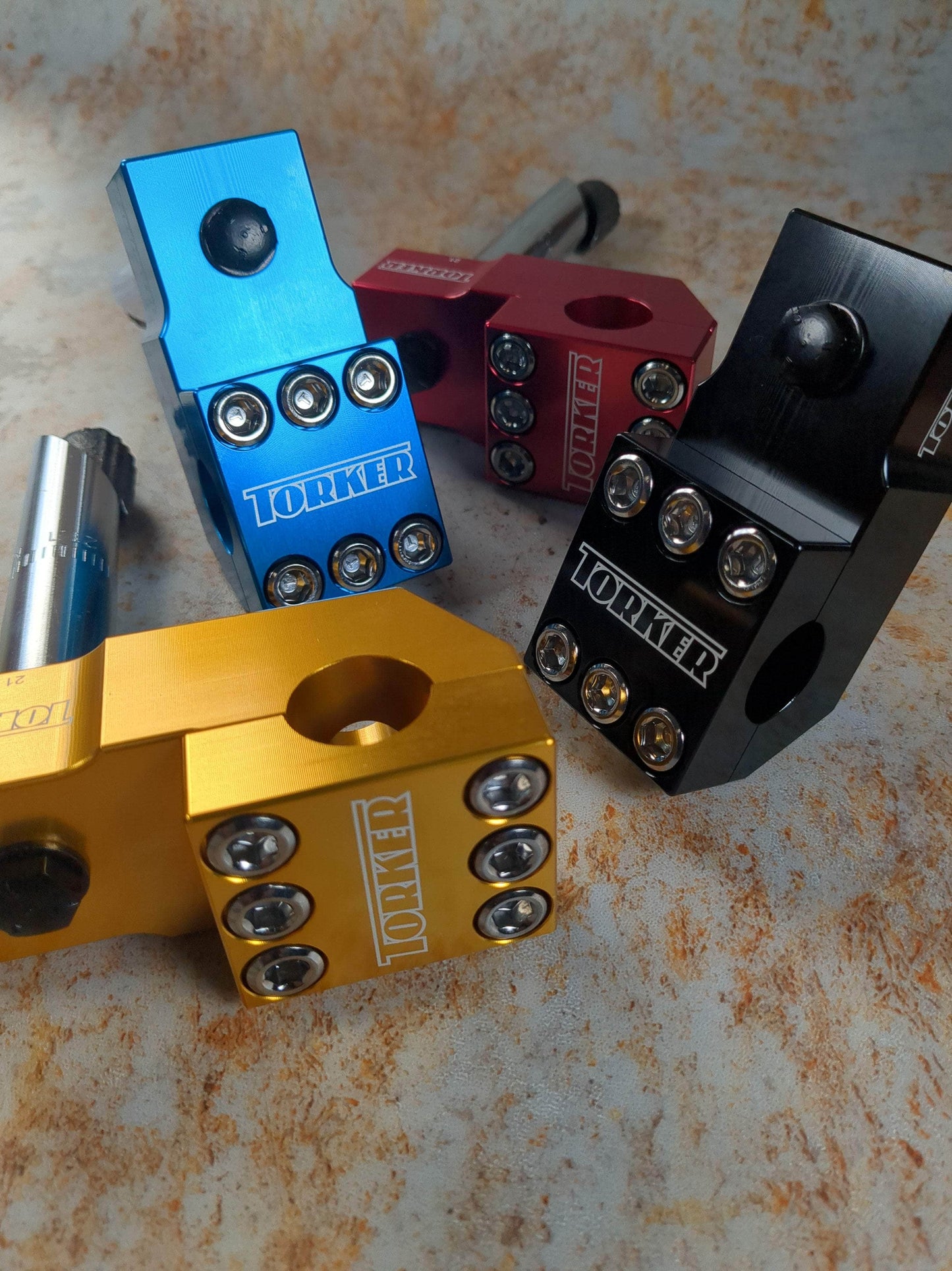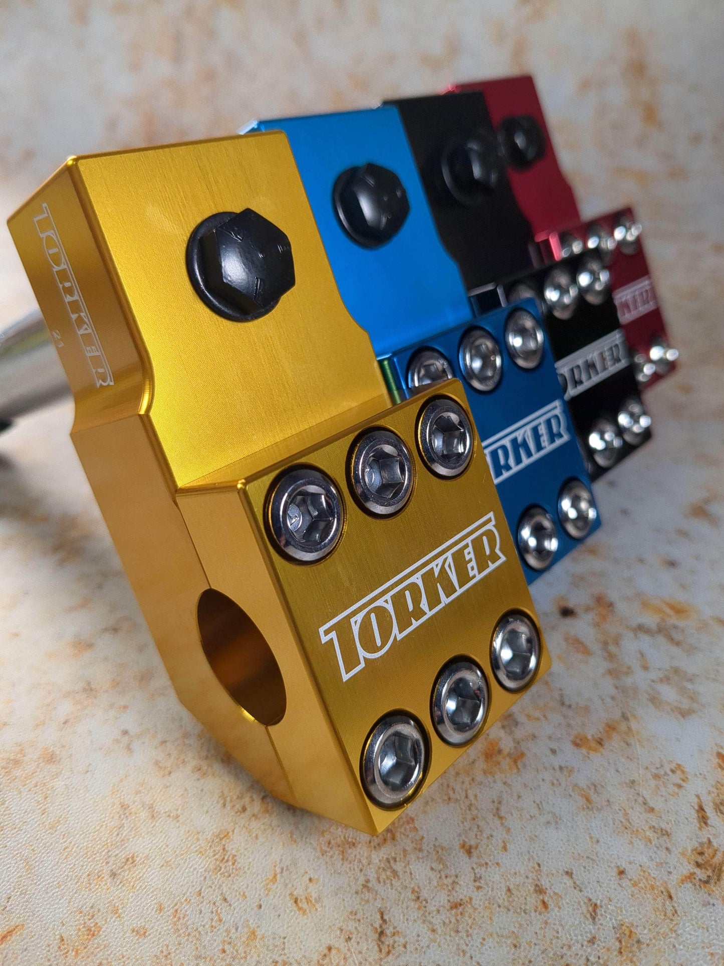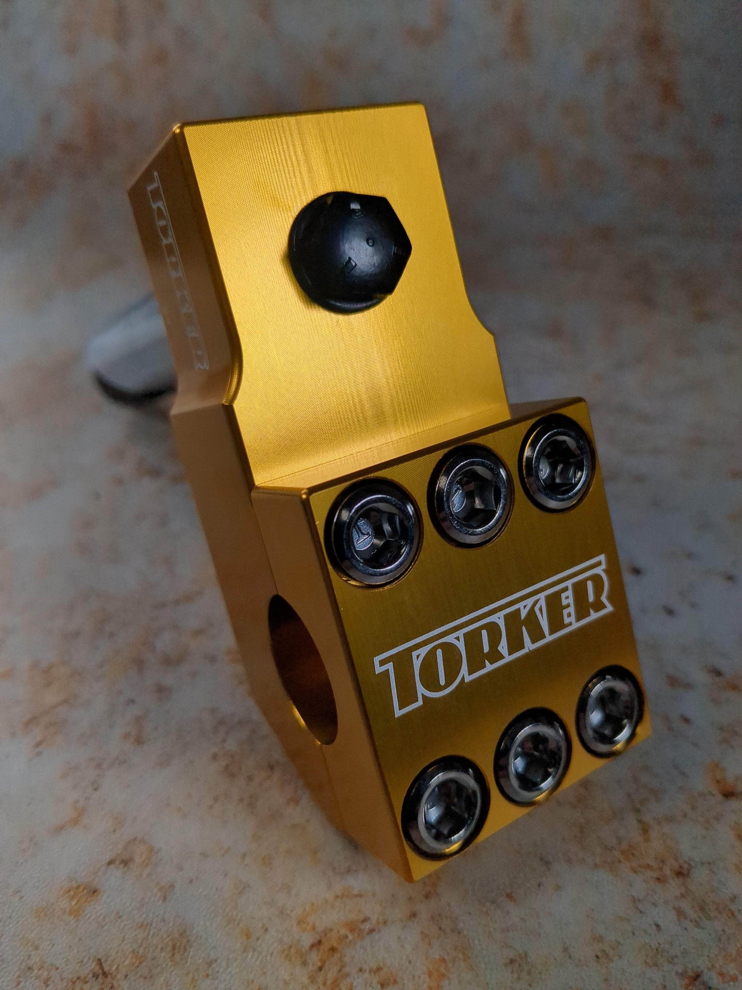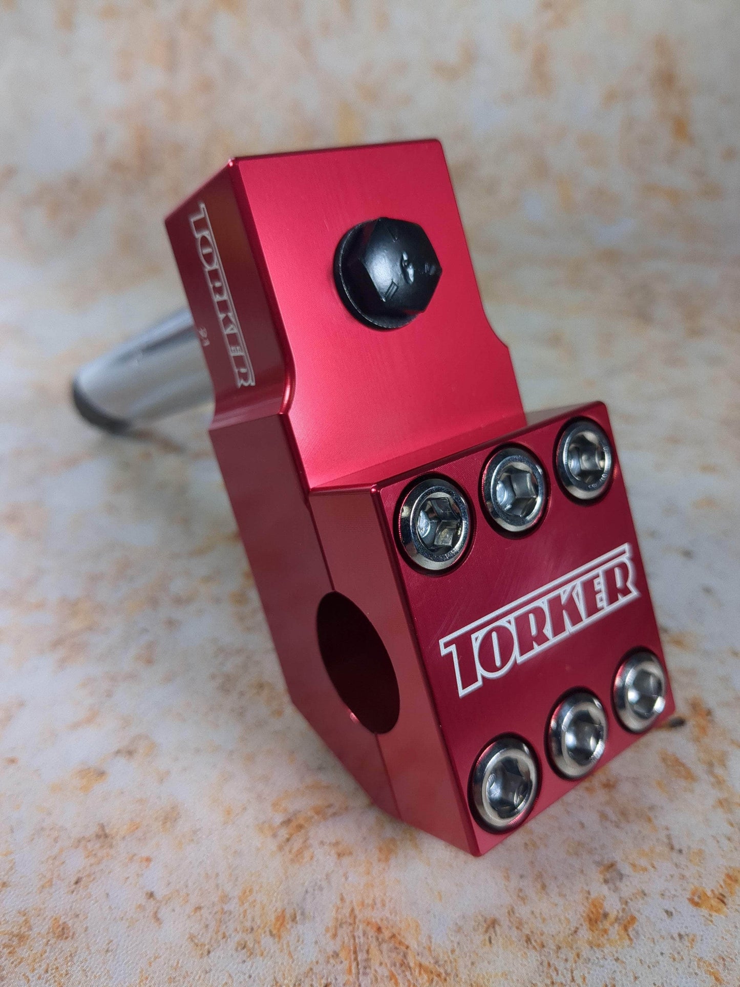 The original Torker stem was ICONIC with it's futuristic 6 bolt design and weight saving bottom angle. It's bar crushing "Barbarian" (some may say) grip on your bars was legendary. So legendary, that it was copied for years after the "Original" Torker had to close it's doors.