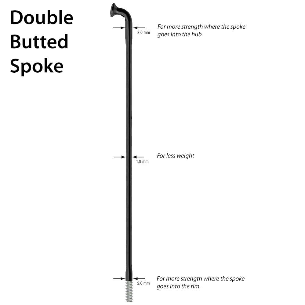 Stainless steel double butted spokes are lighter than regular spokes (close to the weight of Ti but much stronger) but are still durable, it is a great way to shave some weight of your wheelset.