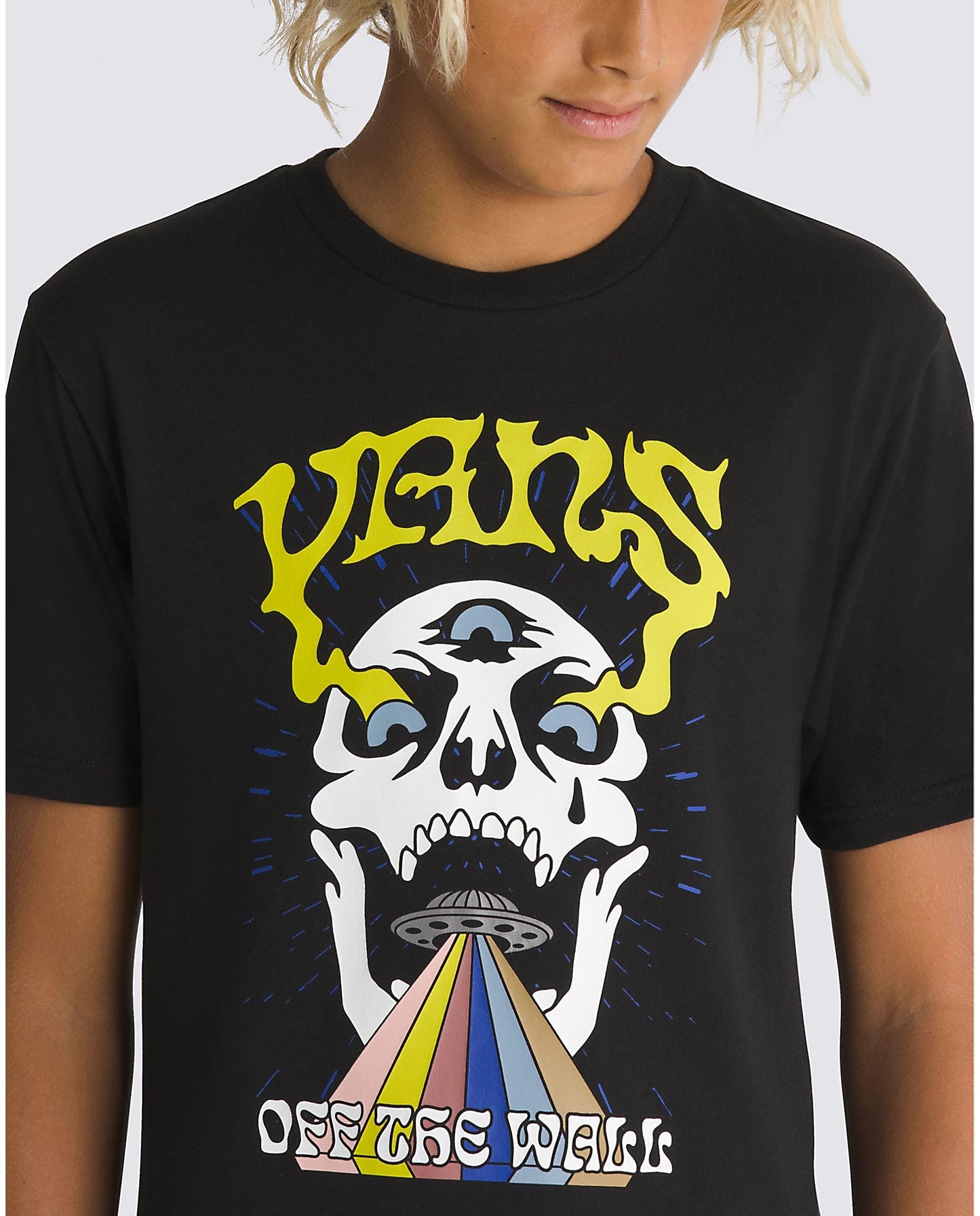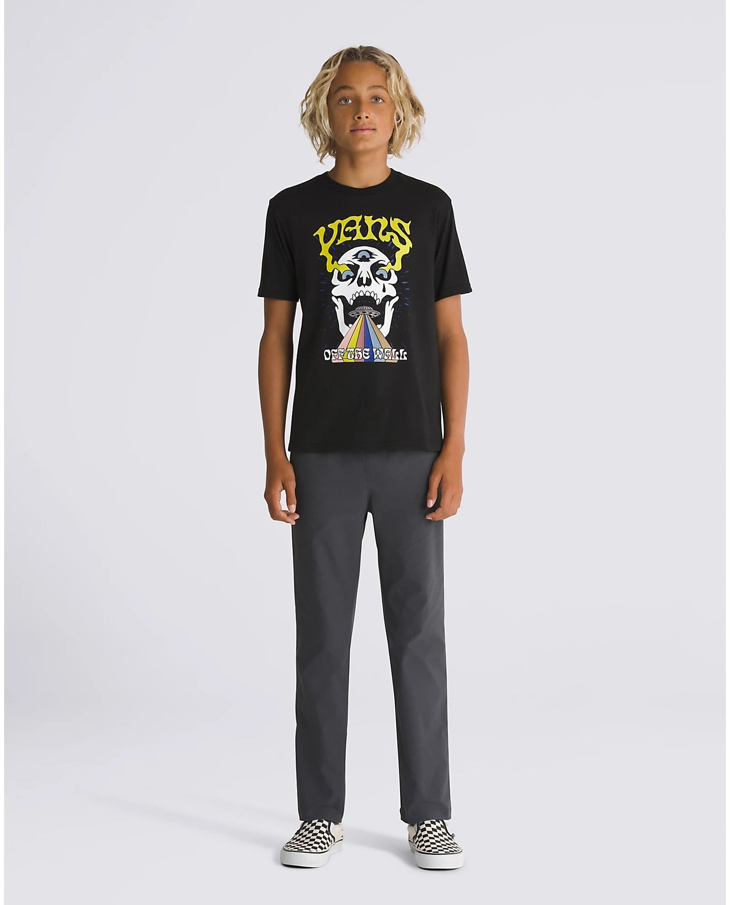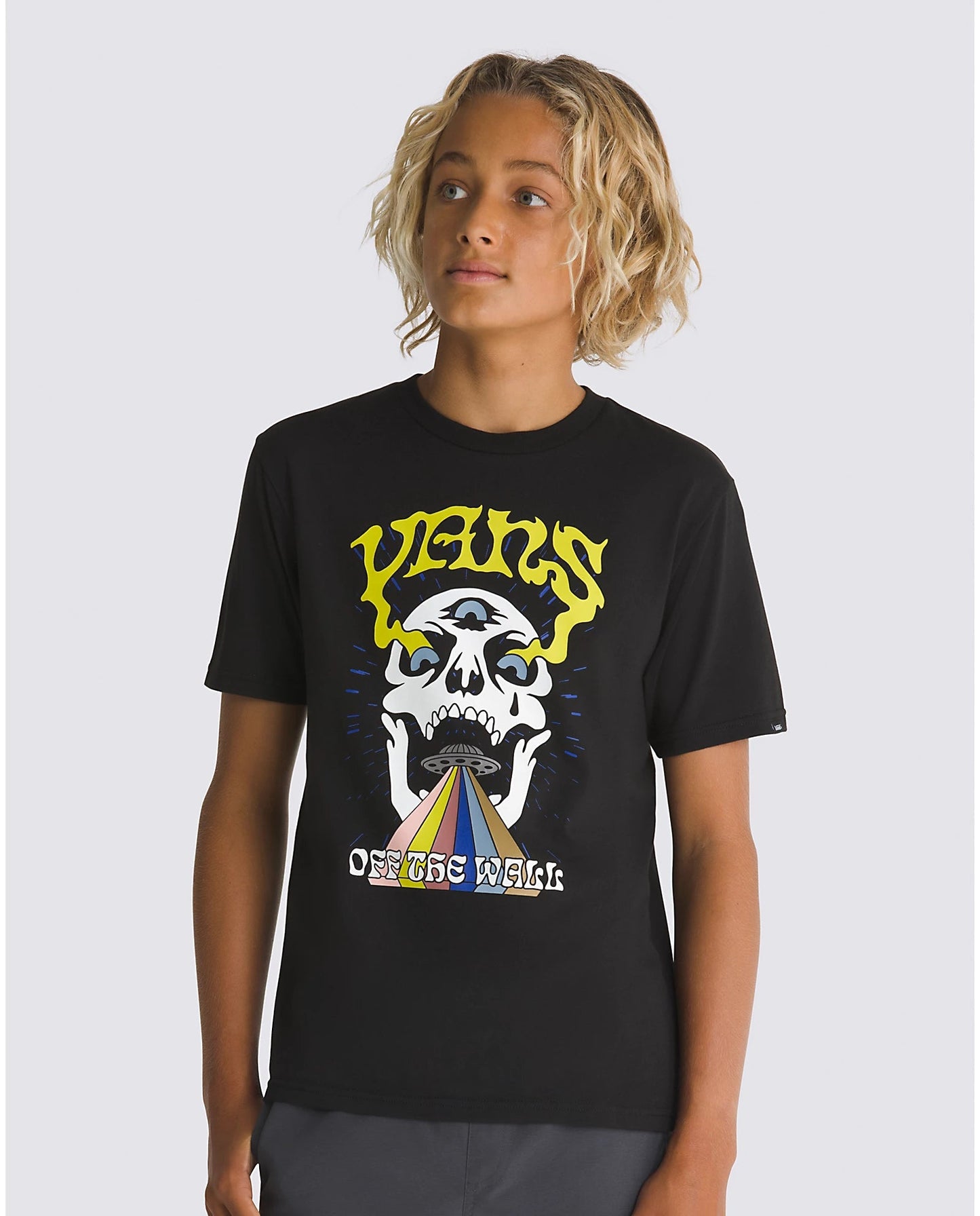 The Kids Vans Skull T-Shirt is a short sleeve crewneck tee made from a heavier weight cotton and features a heavy metal inspired skull graphic screen printed on the front.